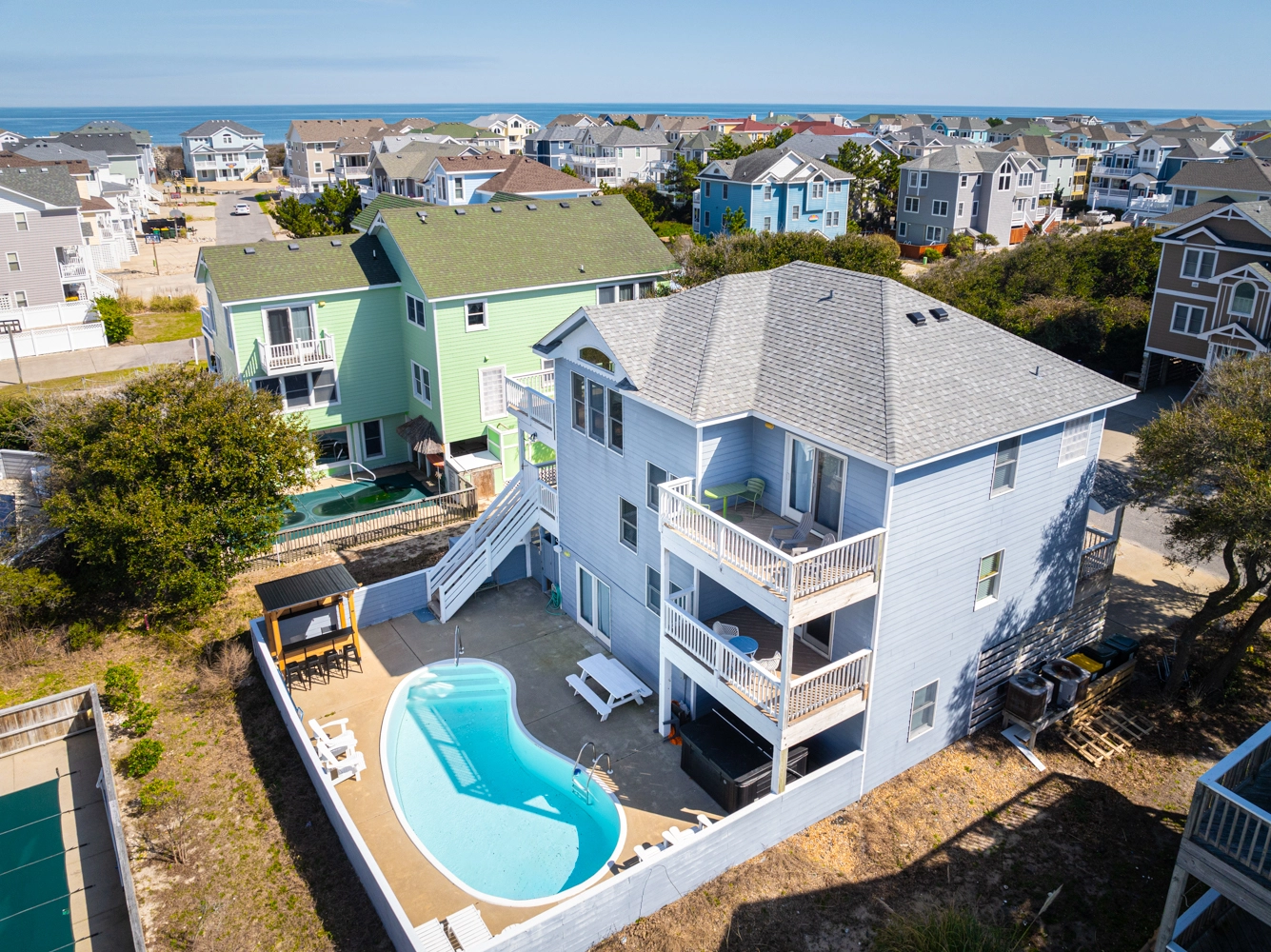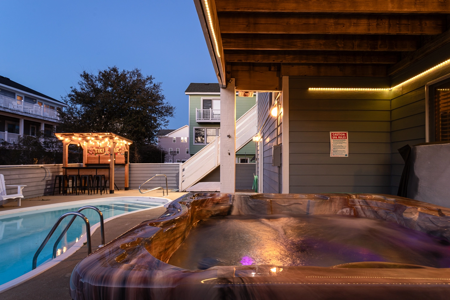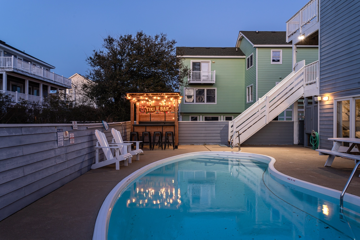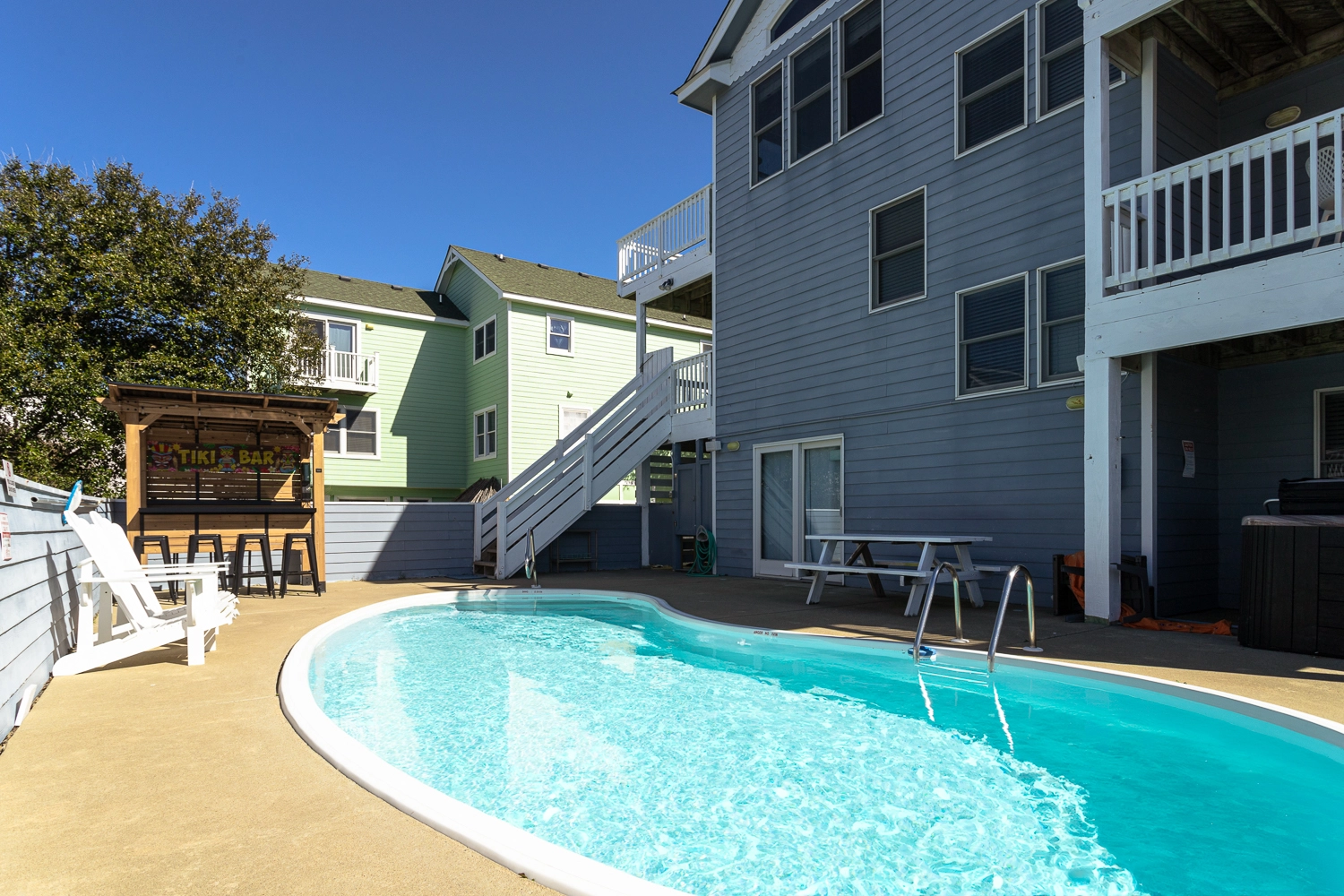 "Loved the second floor deck area with comfortable seats and hammock. Loved the little area with the seat and swing when it was windy it was a good spot to be out of the wind. Pool was cold but it didn’t stop the kids from swimming. The A/C went out on the first and second floor, I called and Twiddy had someone immediately get on the task. They brought us fans since it wasn’t hot this time of year until the AC man could come and fixed it in a timely manner. Everything we needed to cook was available. You name it they had it. The hot tub was so relaxing. The pink flamingo decoration was a hit with the whole family. We named him Freddy and moved him frequently! He made it in lots of pics! Made some great memories! We all had a blast. We enjoyed the video games as well. Already planning our next trip with Twiddy!"