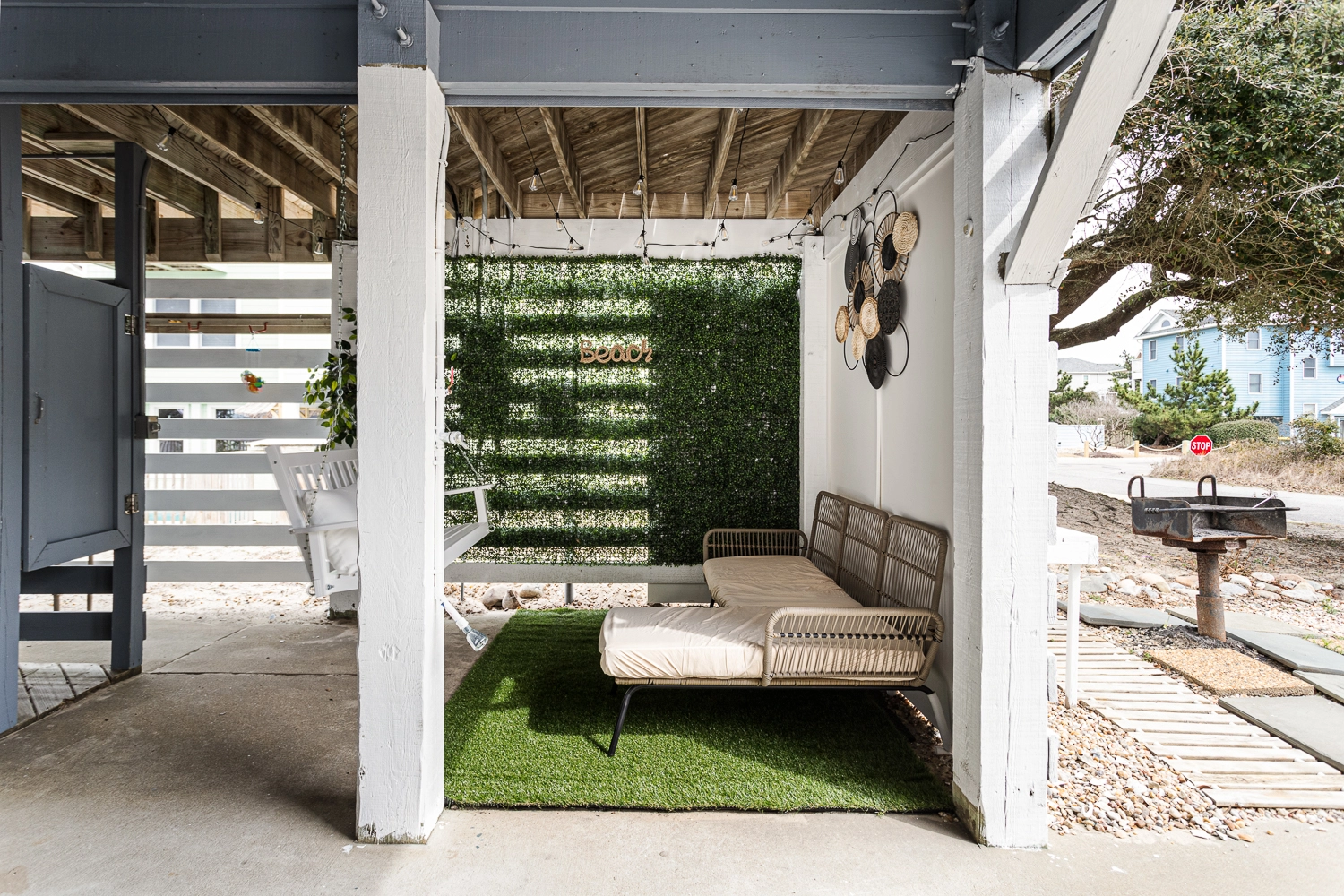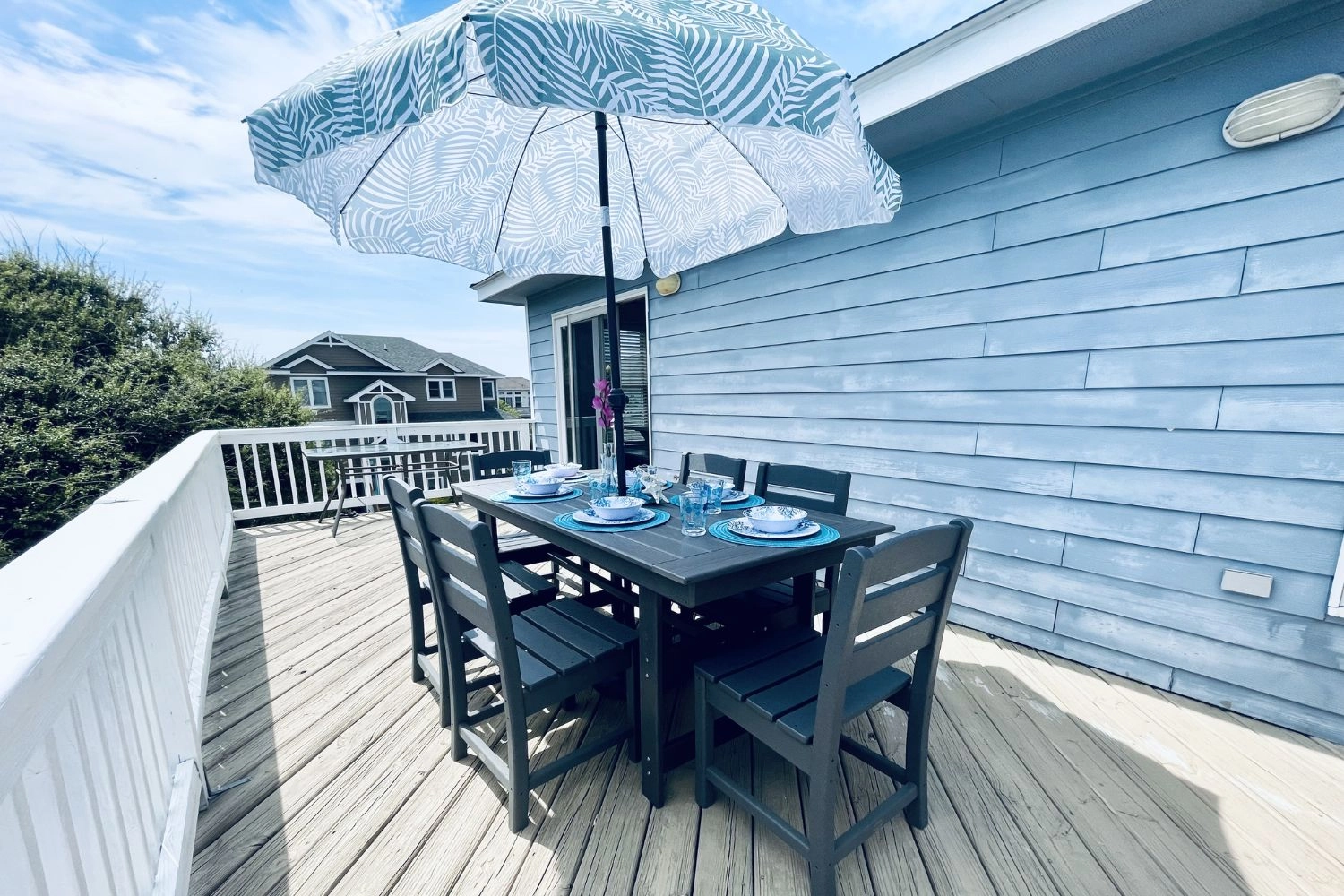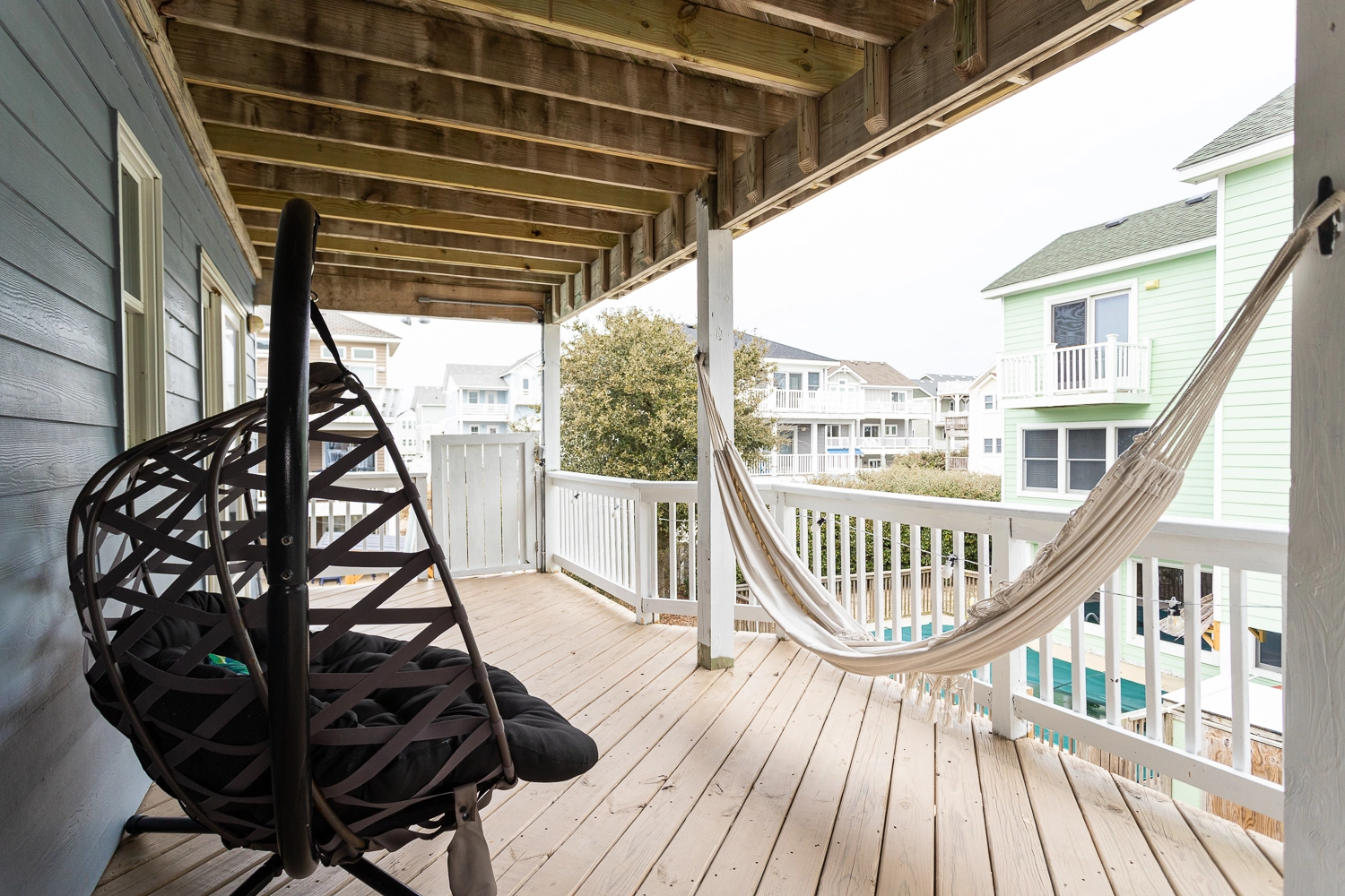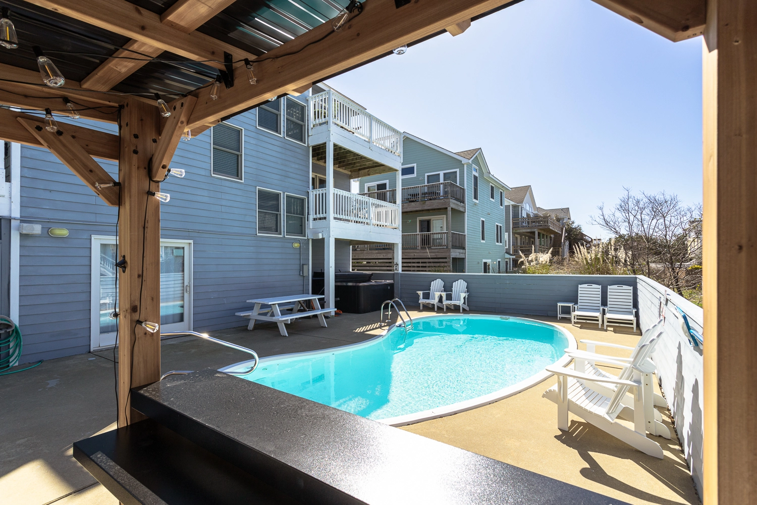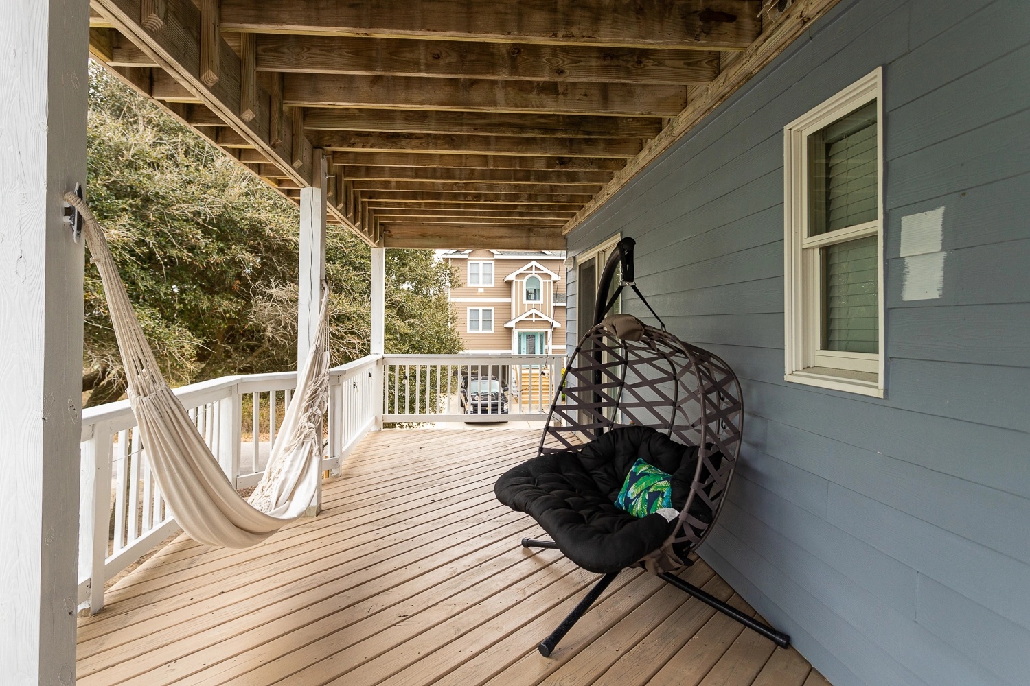 "Loved the second floor deck area with comfortable seats and hammock. Loved the little area with the seat and swing when it was windy it was a good spot to be out of the wind. Pool was cold but it didn’t stop the kids from swimming. The A/C went out on the first and second floor, I called and Twiddy had someone immediately get on the task. They brought us fans since it wasn’t hot this time of year until the AC man could come and fixed it in a timely manner. Everything we needed to cook was available. You name it they had it. The hot tub was so relaxing. The pink flamingo decoration was a hit with the whole family. We named him Freddy and moved him frequently! He made it in lots of pics! Made some great memories! We all had a blast. We enjoyed the video games as well. Already planning our next trip with Twiddy!"