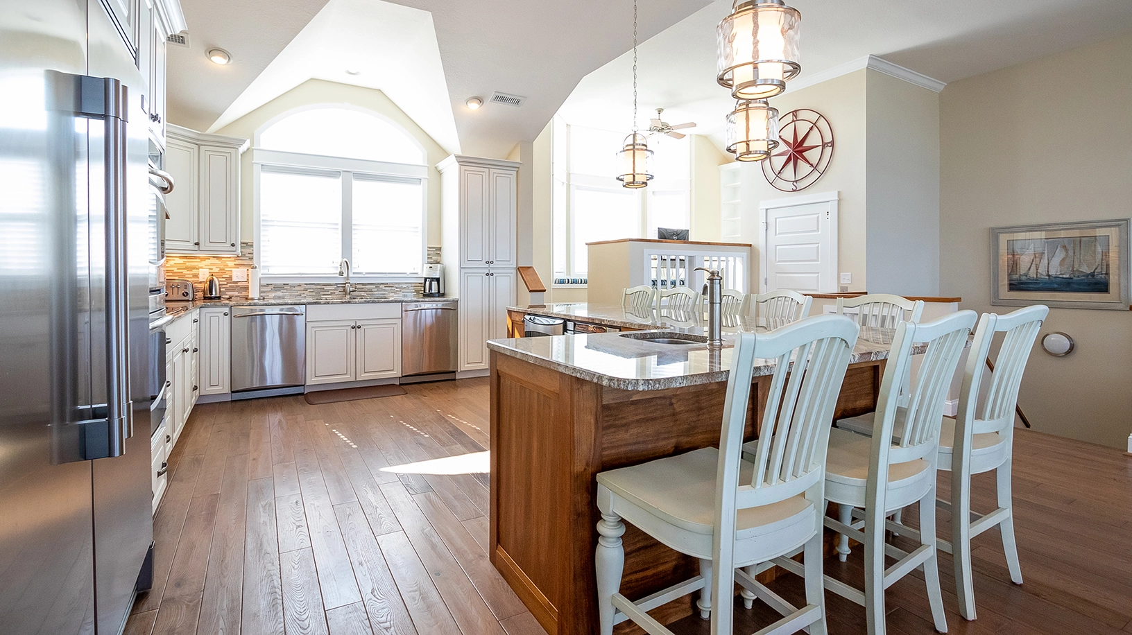 "Our family of 14 absolutely loved the Wave Watch Inn with its spacious king size suites for all of our married children plus fun queen bunk bed combos for the singles children and grandchildren. The great room on the top floor was amazing with double ovens, double microwaves, seating for 14 at the table and speculator ocean views."