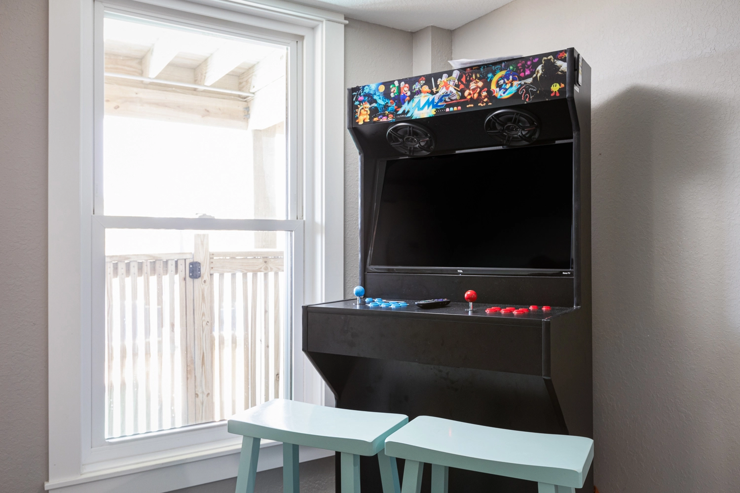 Rec room (QSS) with arcade game and wet bar; full bath.