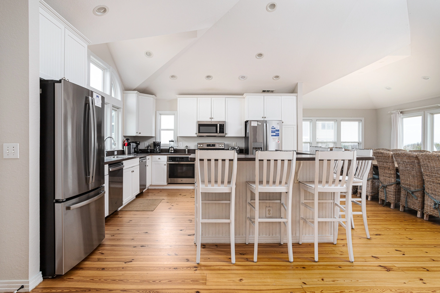 "Kitchen is extremely well equipped and the double ovens and multiple refrigerators are a tremendous plus with large groups. We loved that every bedroom had its own private bath and the multiple living spaces to stretch out and relax provided the perfect room. Beach access is so close and convenient. Views are incredible!"