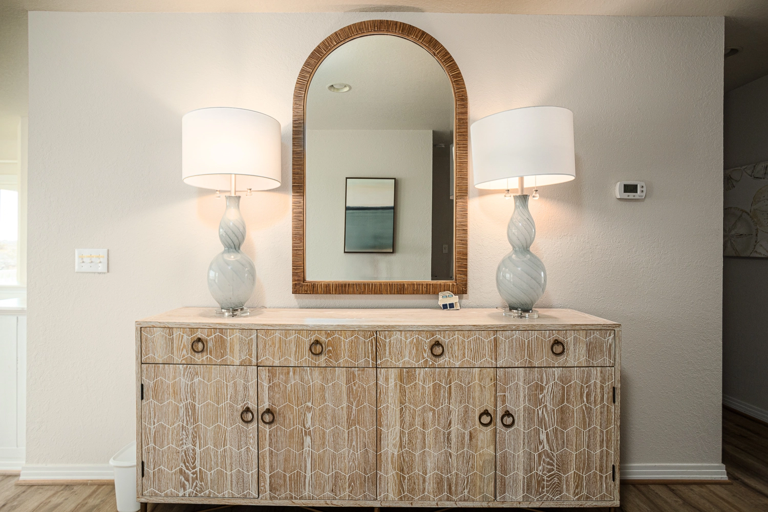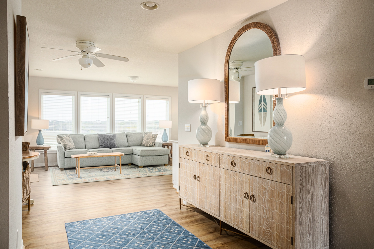 "This home was nicely furnished. We loved the proximity to the beach access and beach. The bedrooms were all in a great location....not too many under the kitchen or near the theater room (aka noise)."