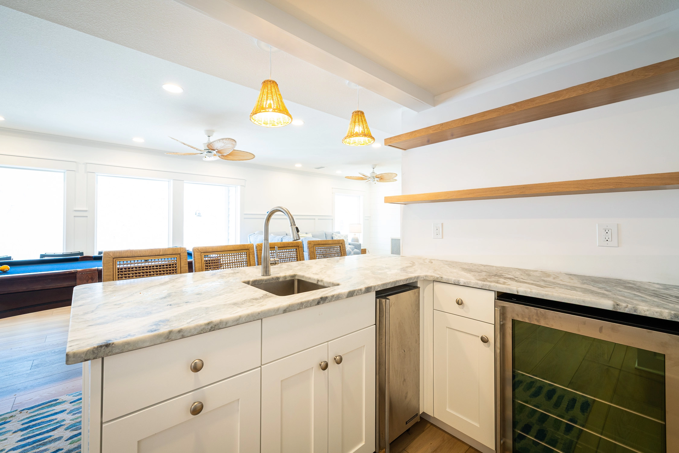 Elevator, multiple TVs, outdoor Sunbrite TV, saltwater pool, dry covered patio off of rec room leading to pool area, outdoor ping pong table, 2026 beach cabana service provided April 26 to September 25, 2026 (provides morning set-up and afternoon take-down of two umbrellas and six beach chairs on the beach).