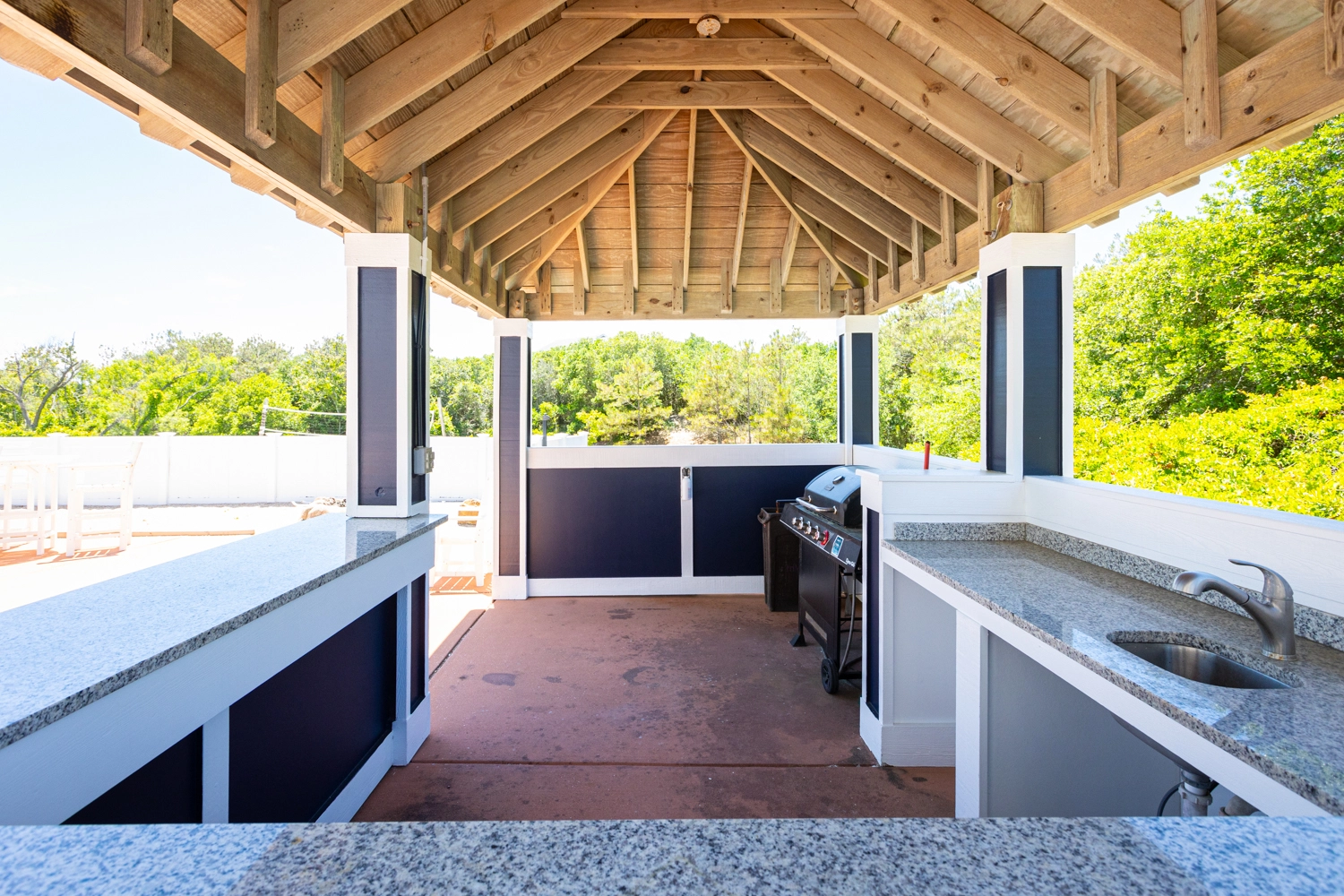 "Lush nature surrounding Quiet cul-de-sac Very short walk to beach Beautiful beach location, especially with very little activity directly to the south on the beach Wonderful upper level, open concept, great kitchen, plenty of seating House seems quiet - have been to other houses that seem cheaply built with paper-thin walls and floors Great outdoor space with grill, gazebo, pool, hot tub, outdoor showers"