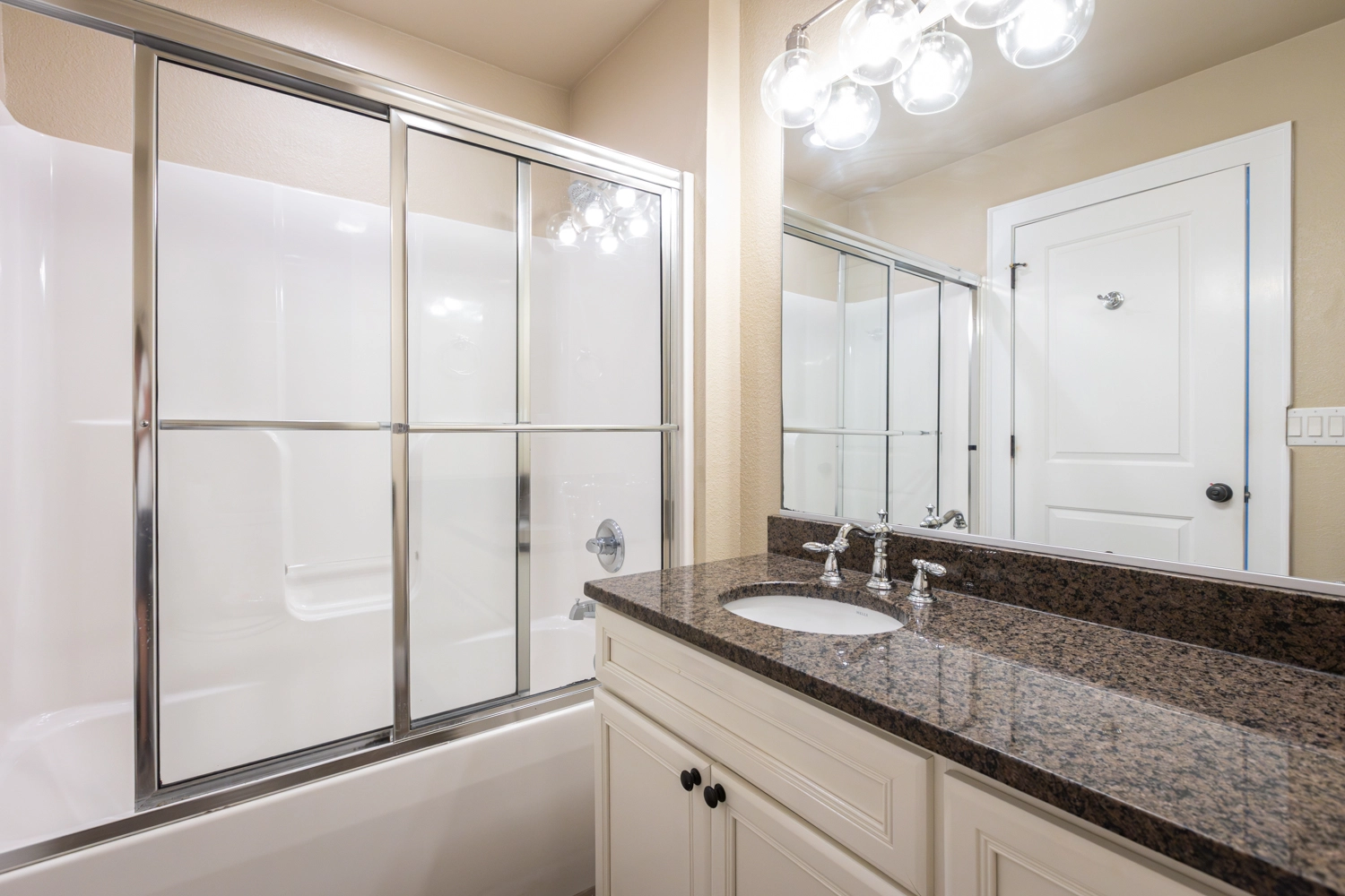 "Pool area, theatre room, private baths and multiple appliances in kitchen."
