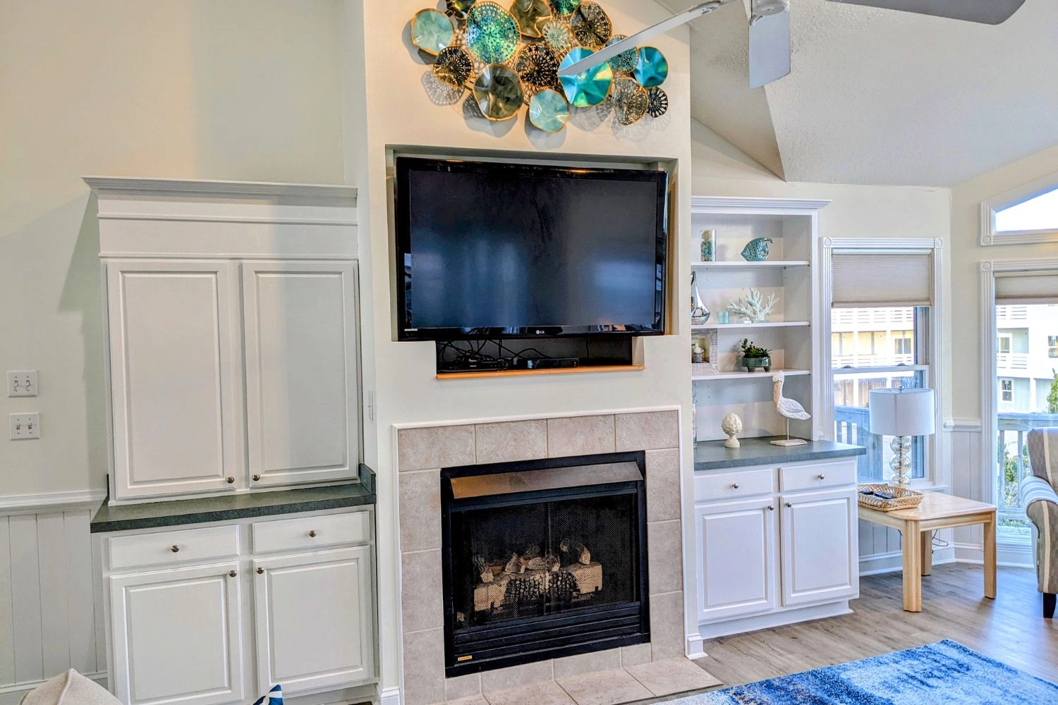 Multiple TVs/DVDs/stereos, gas and charcoal grills.