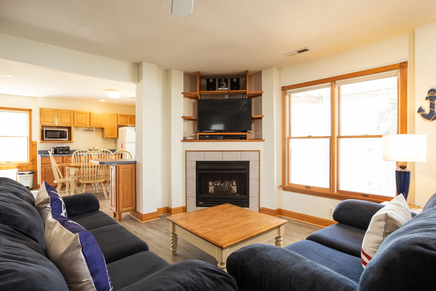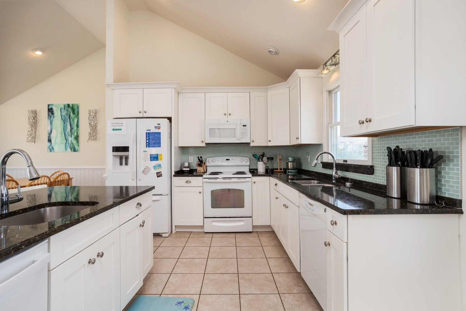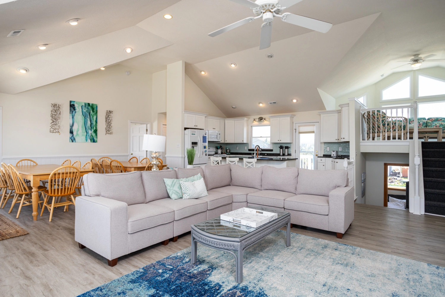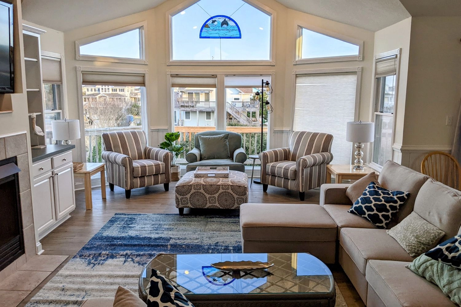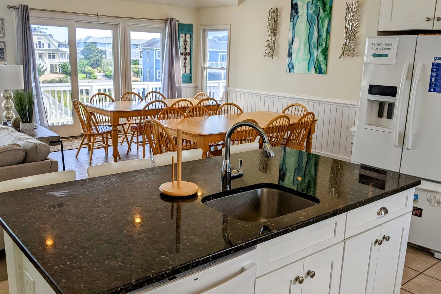 Great room; kitchen with double dishwashers; open decks.