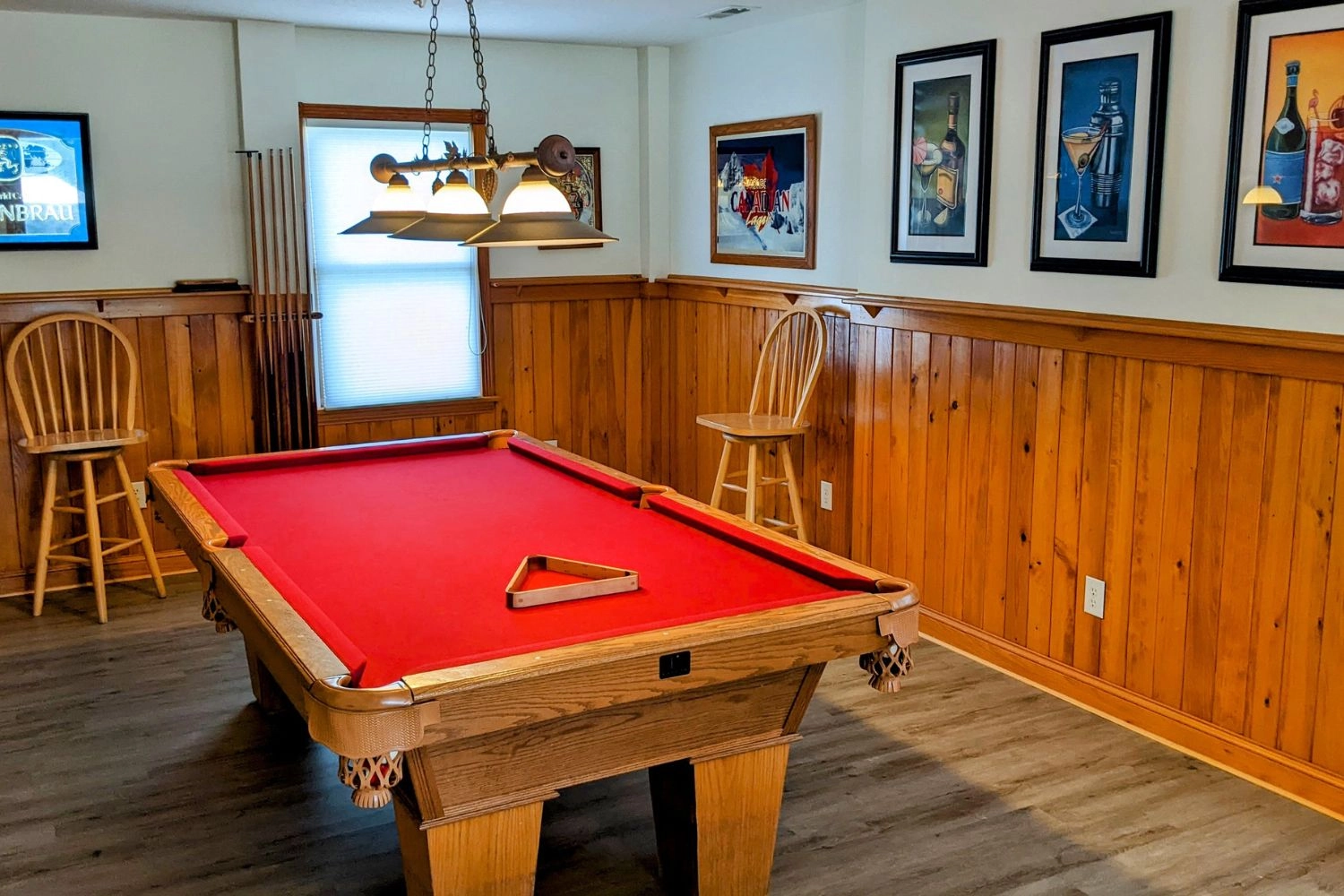 "The house was spacious enough for our group of 17. The kitchen was equipped with everything we needed to make meals. We had a couple babies under the age of 1 and there was baby gear provided, such as a high chair and baby gate to block the stairs. The game room downstairs was an area that got lots of use from all age groups. The kids loved the arcade games. The weather didn’t provide us much opportunity to use the pool, but the playground area was nice to be able to use in the cooler temps."