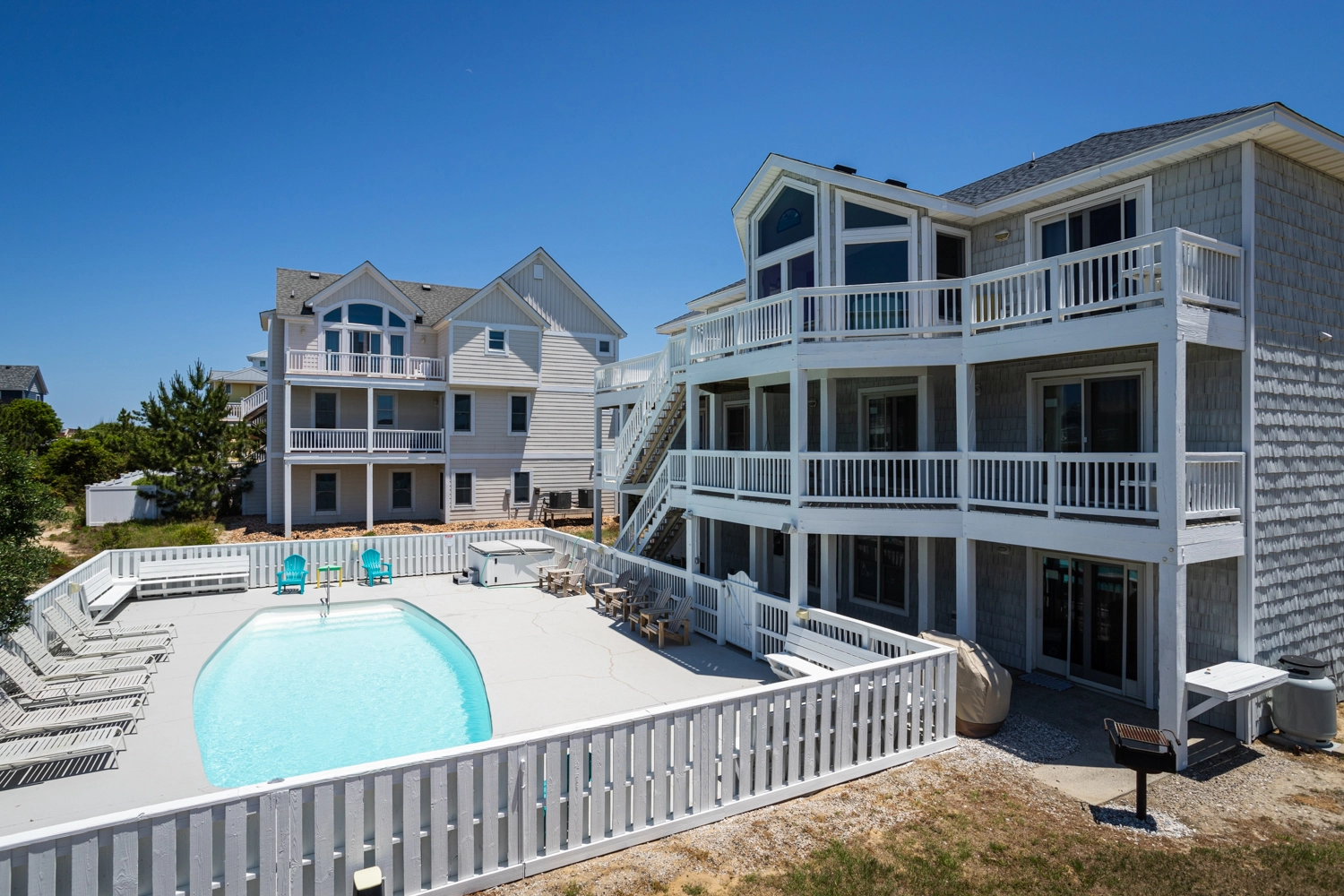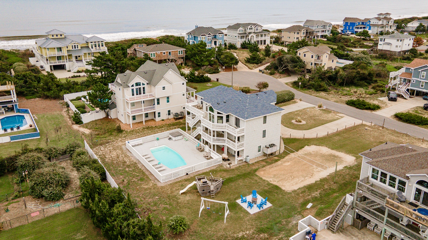 "We celebrated my parents 50th Wedding Anniversary while at the Outerbanks. There were 25 of us, ranging from age 5 months to 69 years old. We never ran out of things to do. There were so many fun amenities. We could play volleyball, swim, hottub, basketball, sit around fire pit, play on jungle jim or go to the ocean outside. Inside We could play pool, ping-pong, fuseball, arcade games, video games, board games or watch movies on the home theater. The house was freshly renovated and beautiful!"