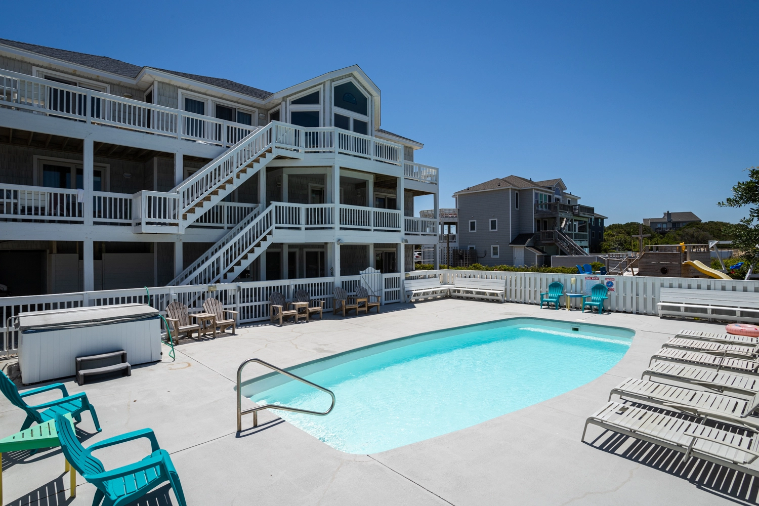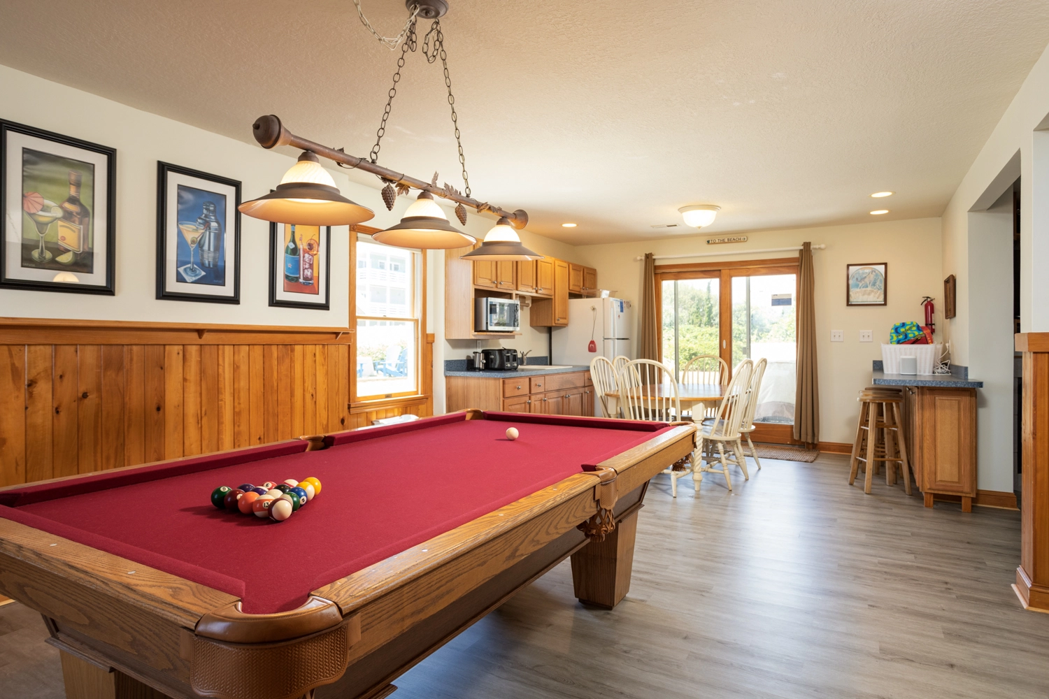 "There was a lot to do in the house itself, especially for a group like ours with 3 young kids. This house felt like it came with a lot of built in entertainment like the play set and swings for the kids, the pool, hot tub, ping pong, pool table, arcade cabinet, foosball, and theater room. The interior was well finished and it was a very short walk to the beach."