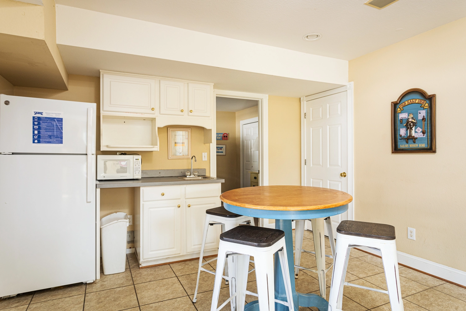 Rec room with pool table, kitchenette with refrigerator and microwave.