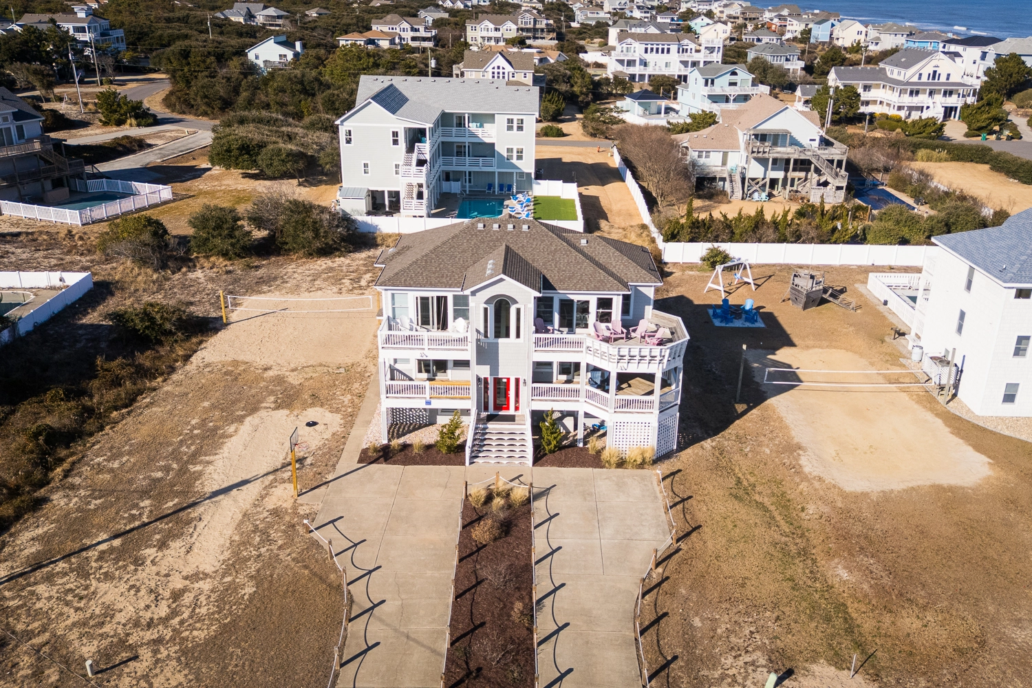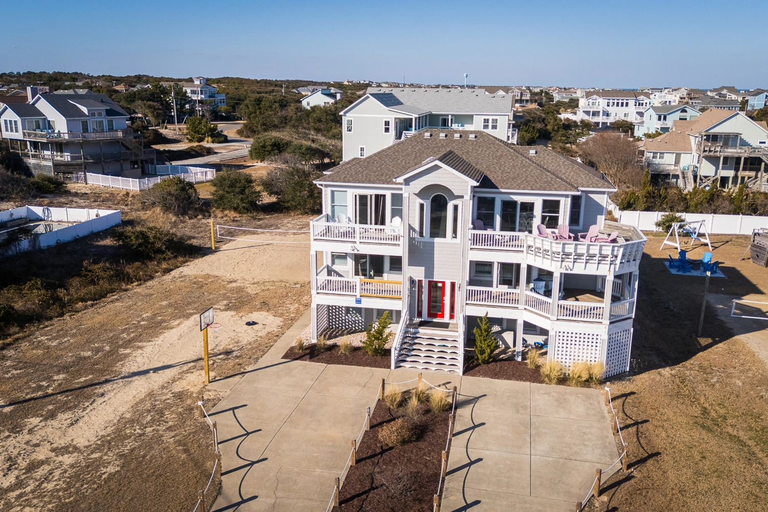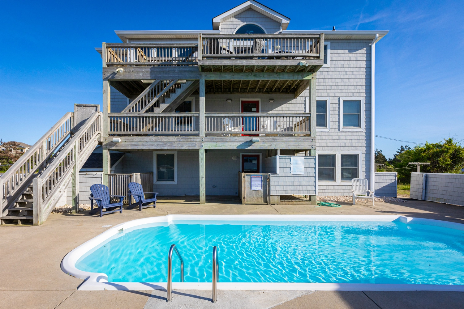 "House was very well designed as far as families. We comfortably had four families and about 11 kids. Very close walk to the beach great location. Couple issues we had his dryer did not dry our clothes and the wooden deck gave three of our children splinters. Very disappointed in the patio in the pool and should never have added advertised a new pool bar. But it was one of the cleanest houses we’ve ever stayed at in our six years of going to the Outer Banks kitchen was great having the two dishwashers was a huge advantage."