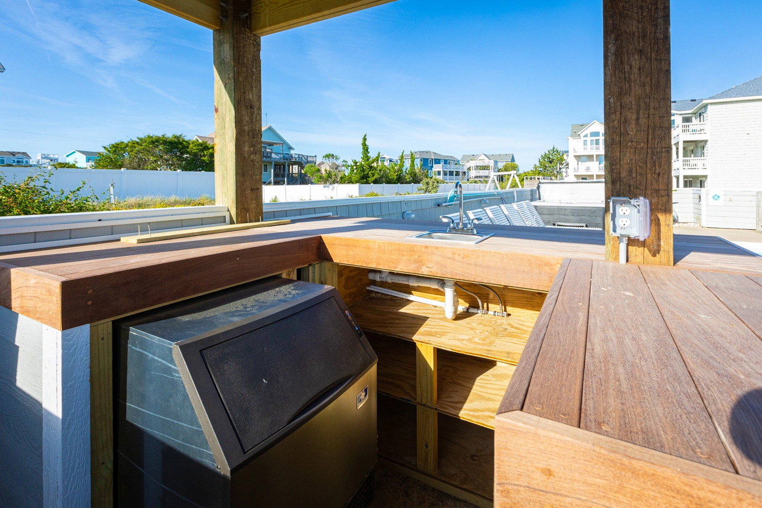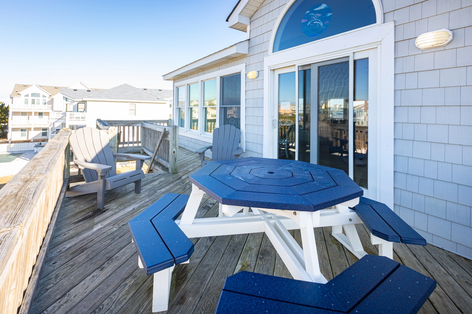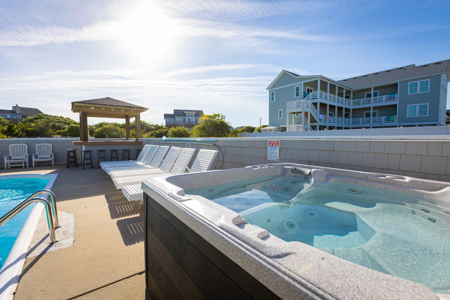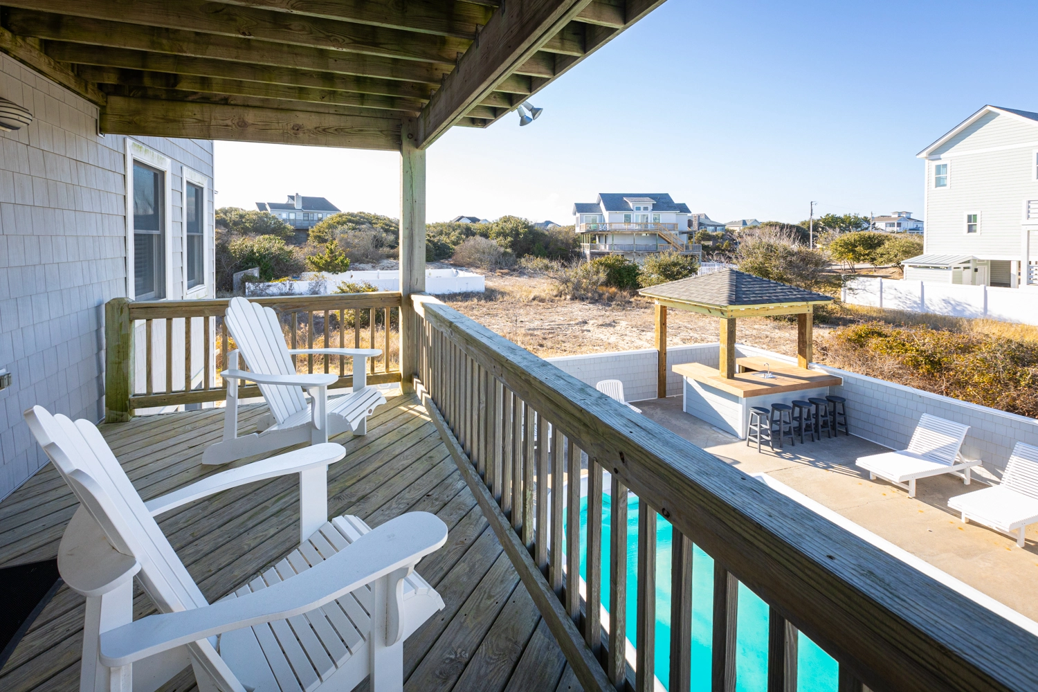"House was very well designed as far as families. We comfortably had four families and about 11 kids. Very close walk to the beach great location. Couple issues we had his dryer did not dry our clothes and the wooden deck gave three of our children splinters. Very disappointed in the patio in the pool and should never have added advertised a new pool bar. But it was one of the cleanest houses we’ve ever stayed at in our six years of going to the Outer Banks kitchen was great having the two dishwashers was a huge advantage."