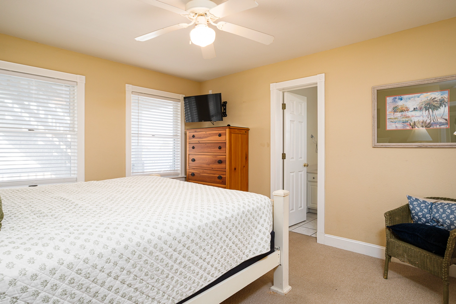 "A bathroom for each bedroom. Plenty of table space for a large group."