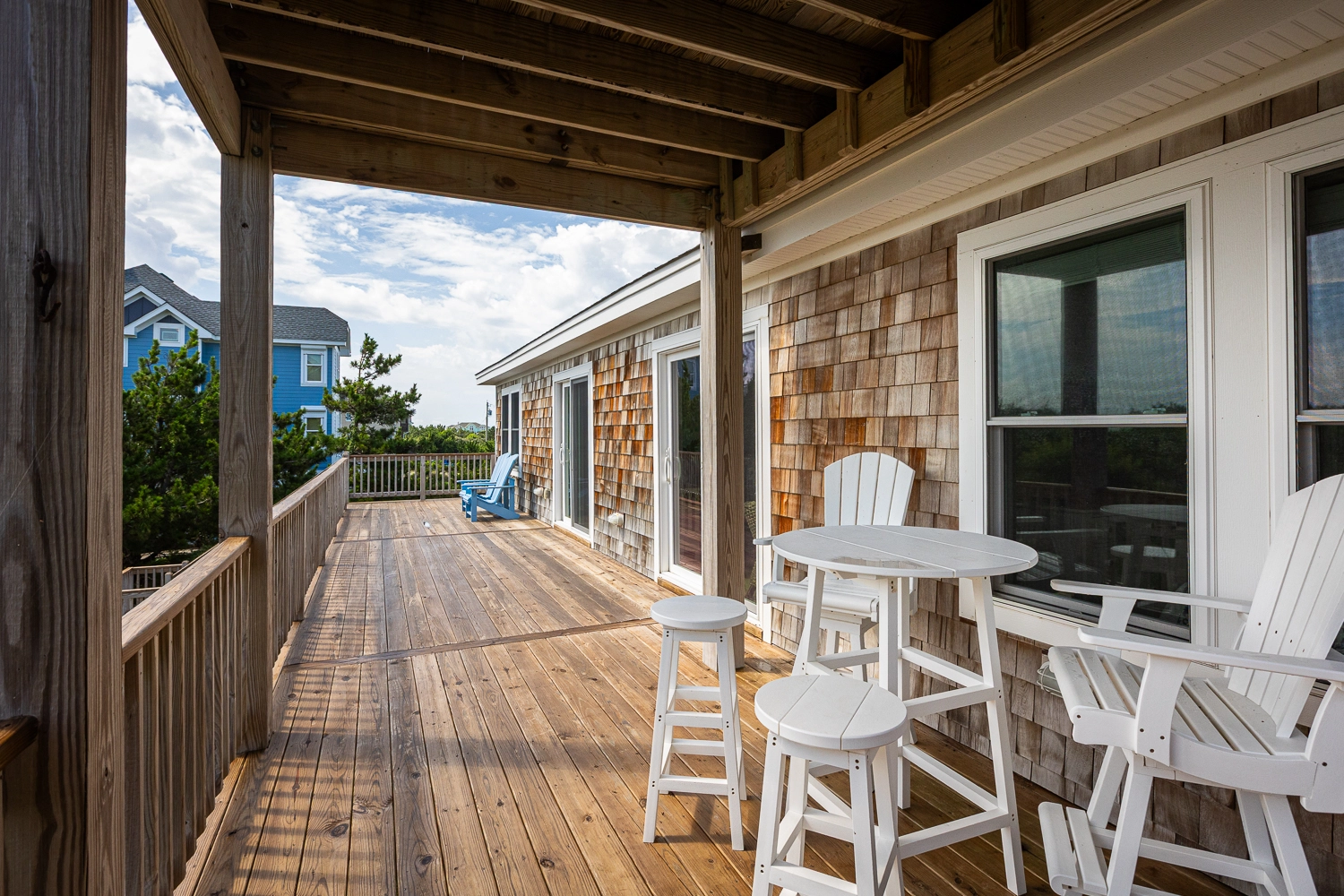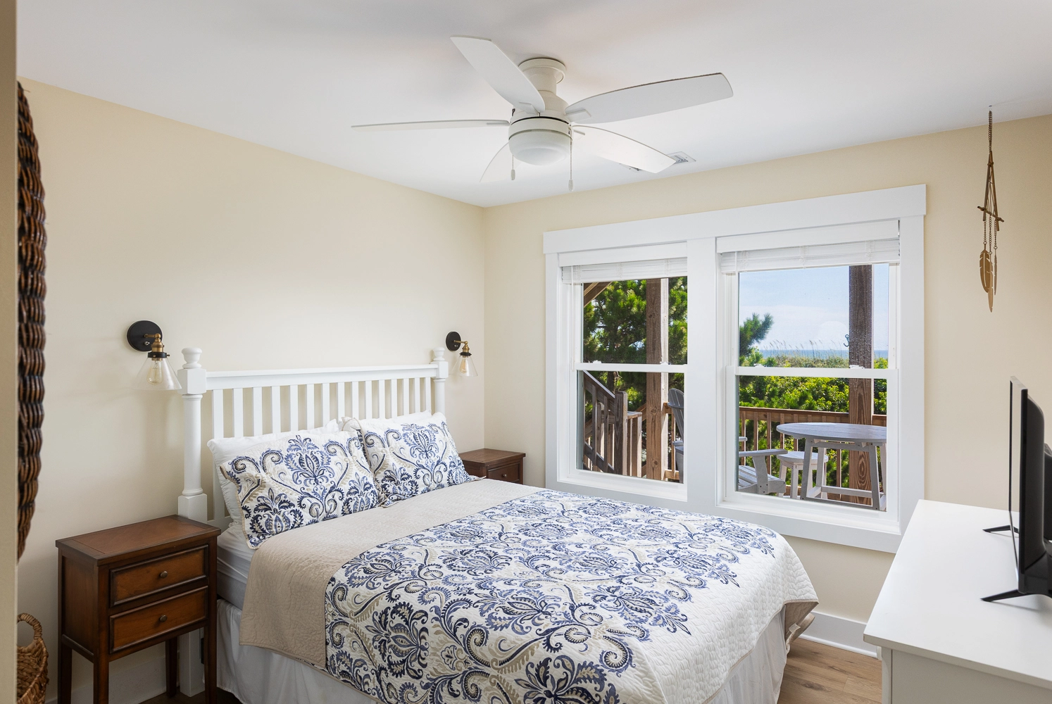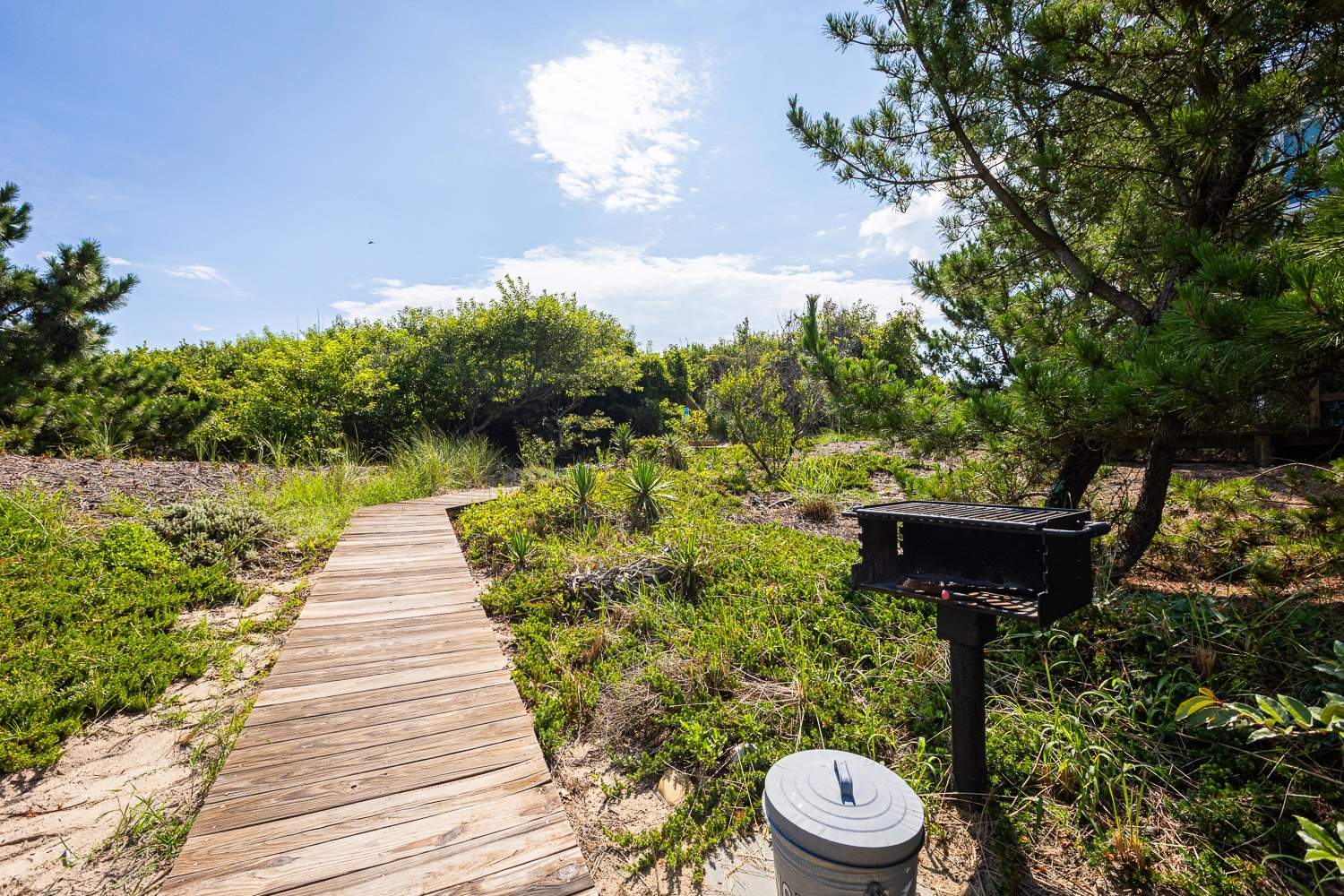 Crow's nest, charcoal grill, open-air outdoor shower (not enclosed).