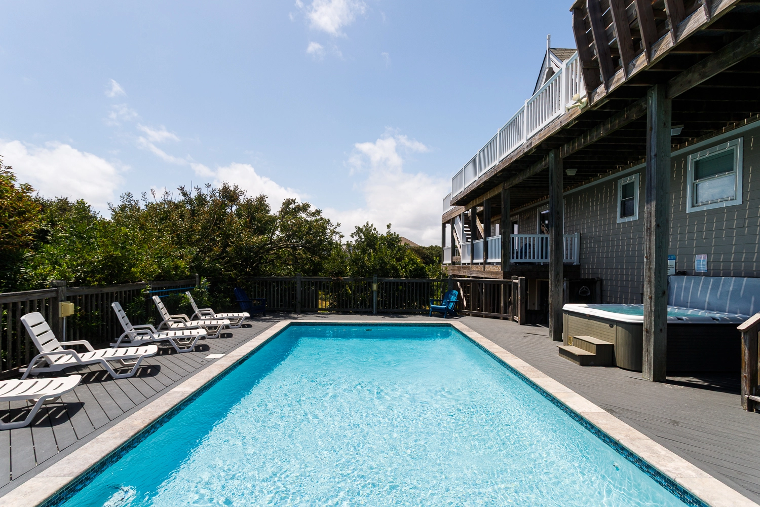 "This is a beautiful home my whole family loved. We finally found the perfect house! The proximity to the beach is great, the house is large and spacious. We never felt like we were cramped. The kitchen is the most well stocked of any home we’ve ever rented. This is our 5th year coming to the OBX for family vacation. The beds are so comfortable. We loved the ocean view from the top deck and had a blast in the pool. This place is truly a gem."