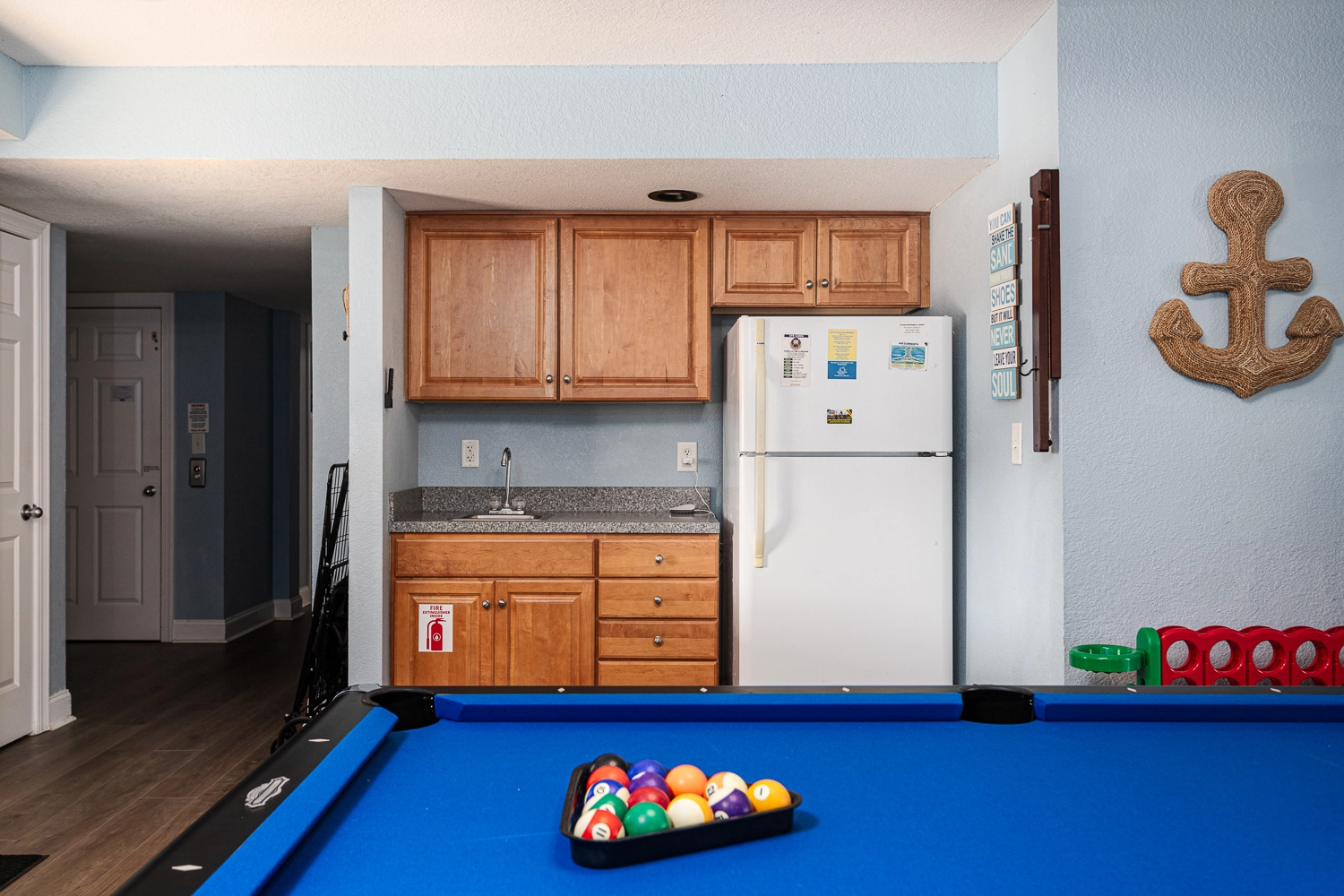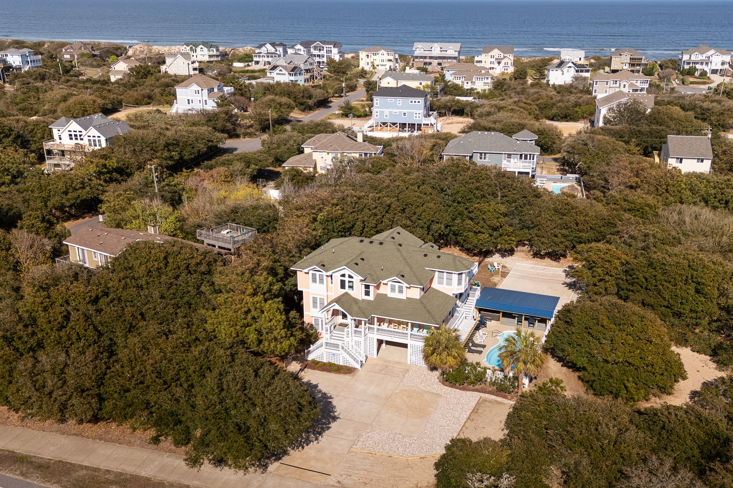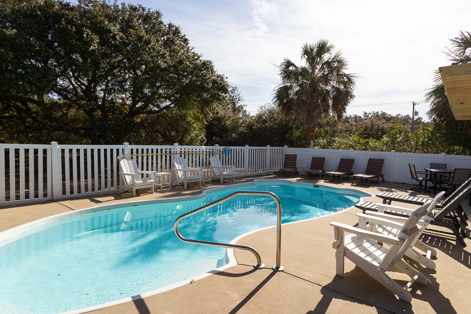 "Private pool, elevator, game room (although Pong game would not allow for 2 players). 8 bedrooms allowed more than enough sleeping arrangements. Close to grocery store and eateries plus a short walk to the beach."