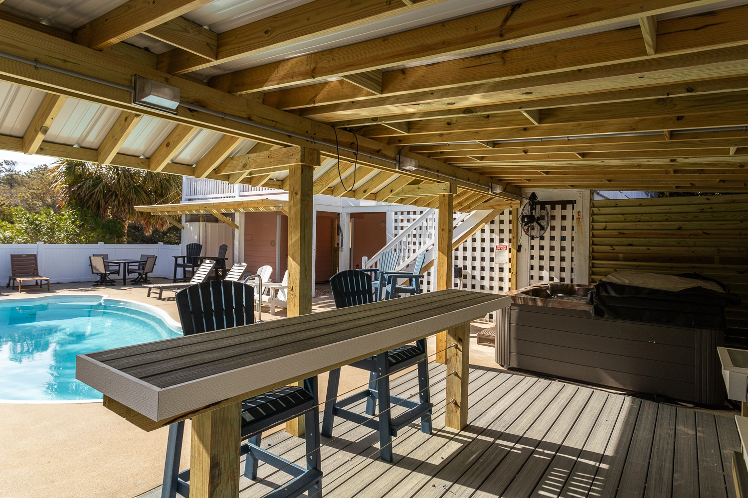"There are so many little things that have made this one of our favorite houses. The pool/bar/volleyball court area is fantastic, but the best is the fenced in area where I could let my dog feel like she was on vacation also and not worry that she was gonna take herself on a trip to the beach or super wings or keep her limited to just walks and being inside."