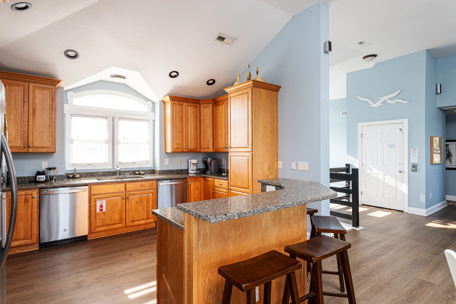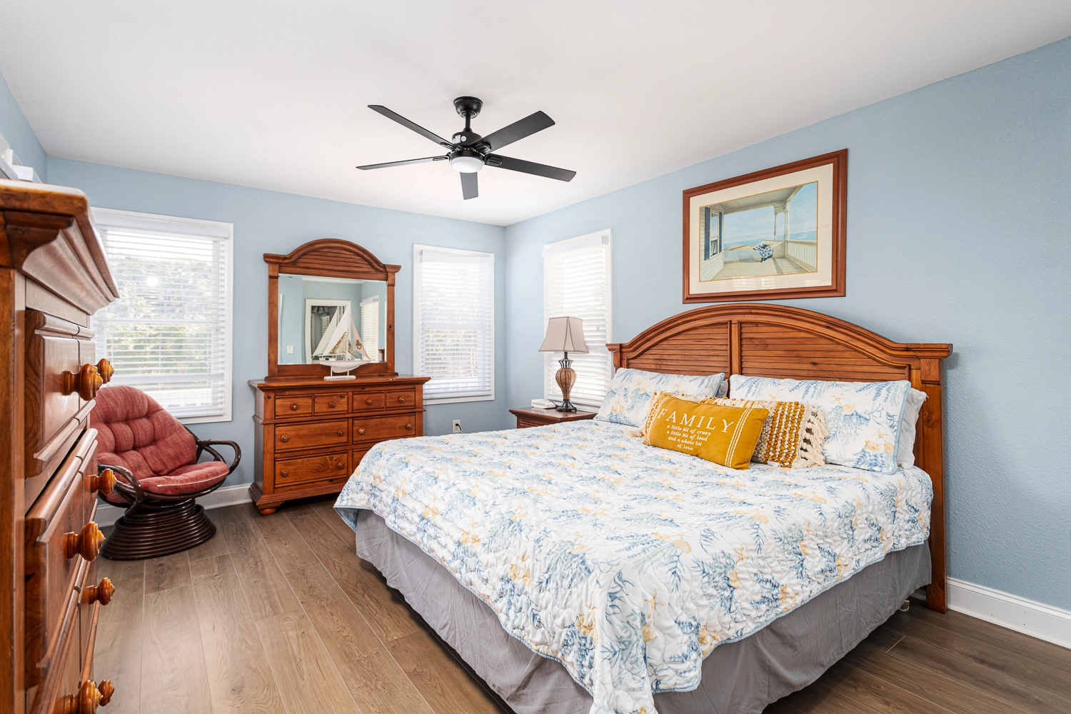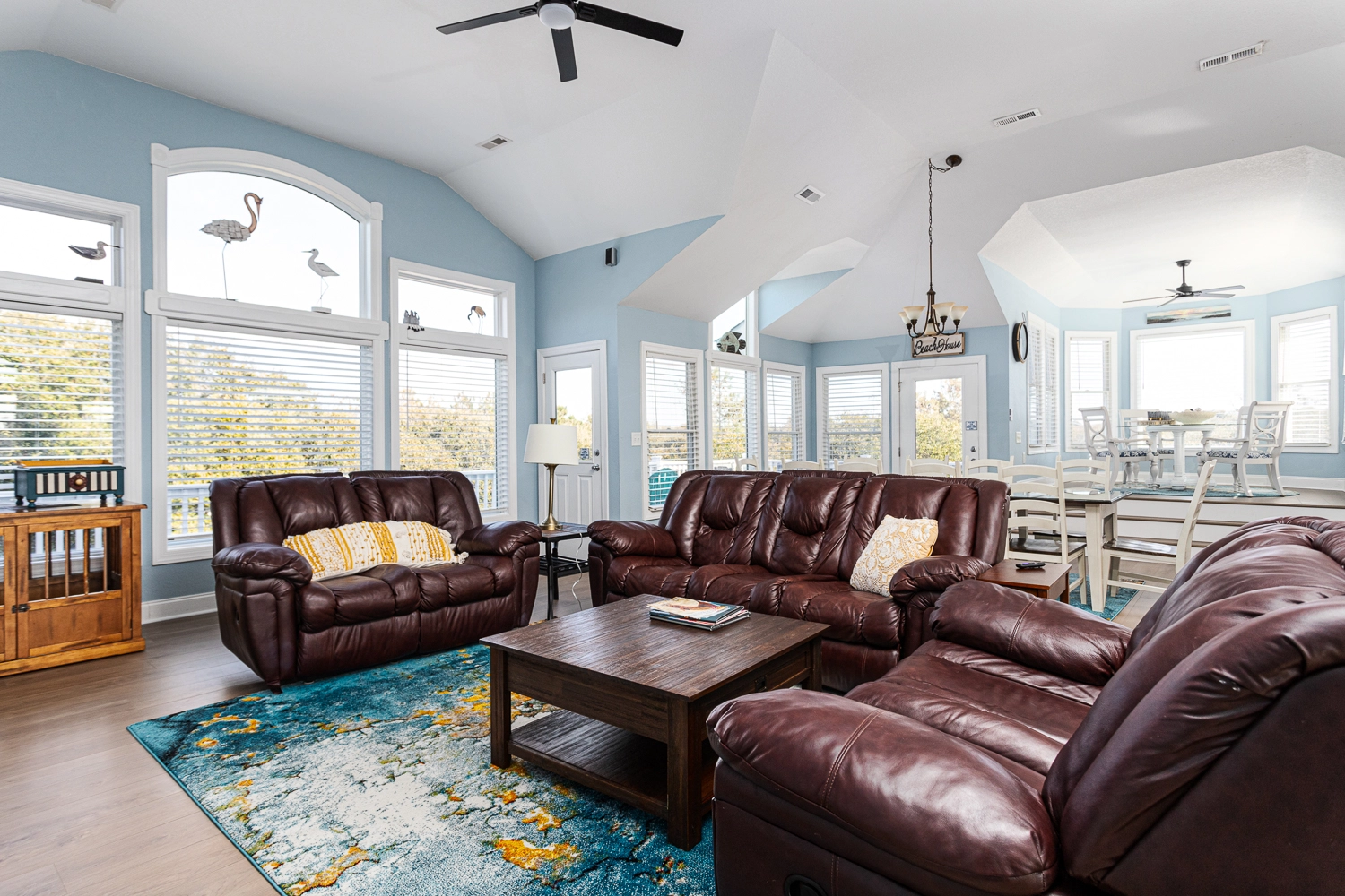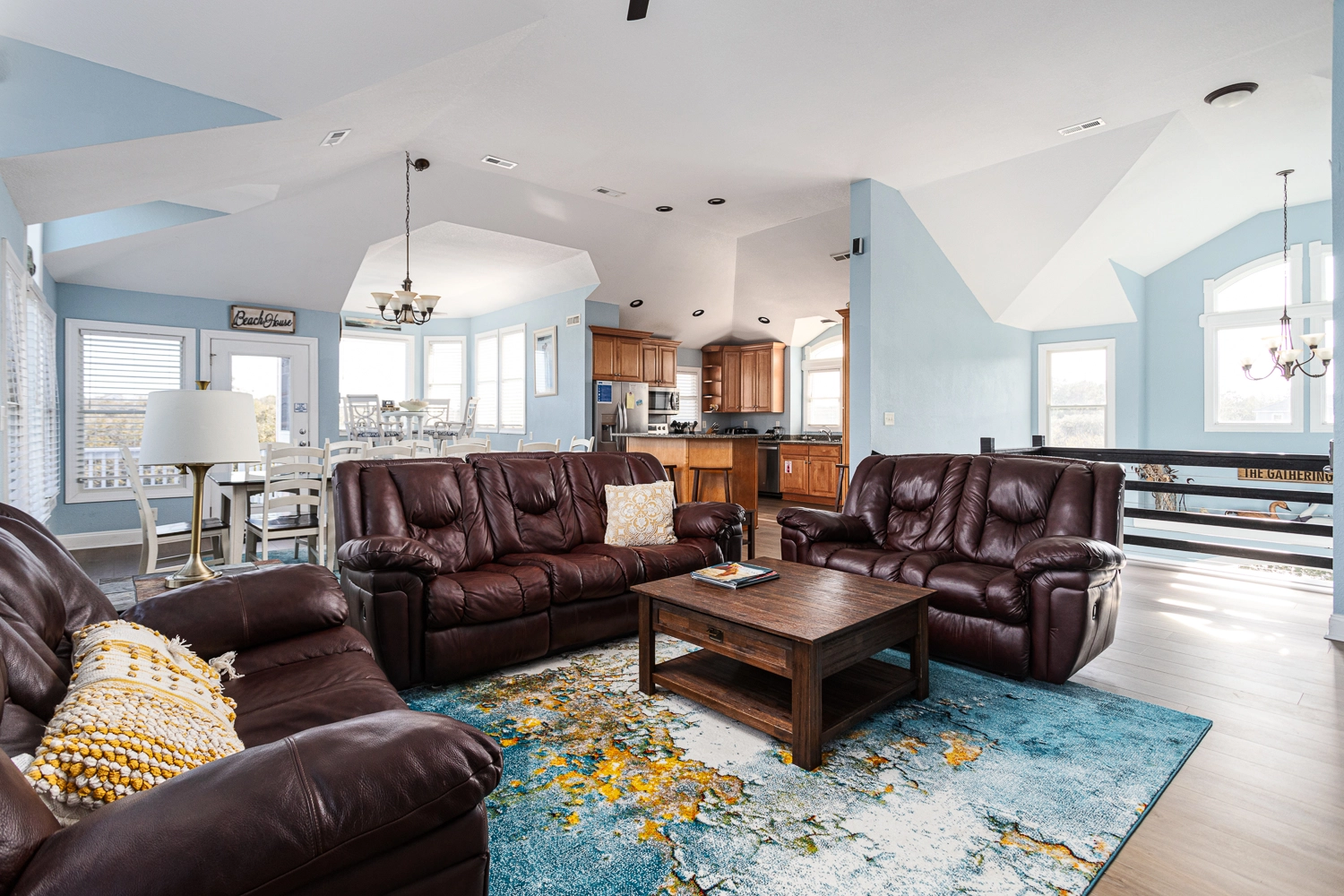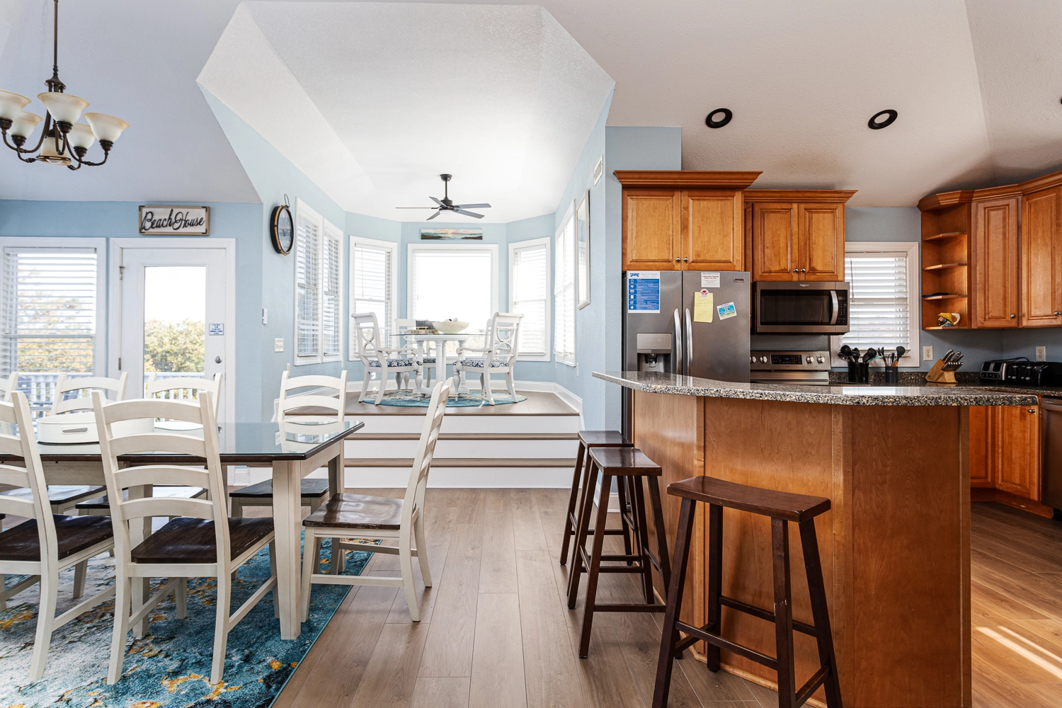 "The location of this home is close to the beach and allows easy access to shops and restaurants. We also love the open upper floor. This allows for our large group to gather for meals and for just chatting."