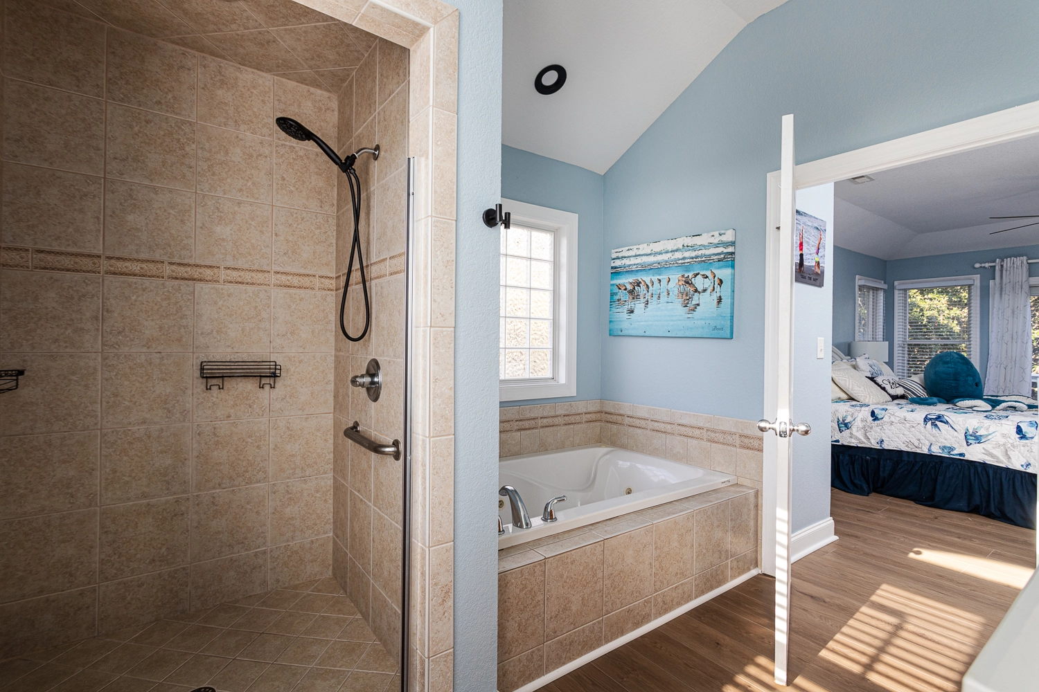 "Many bedroom with baths, close to beach, fenced in yard, large hot tub and elevator"