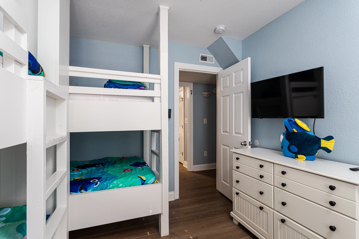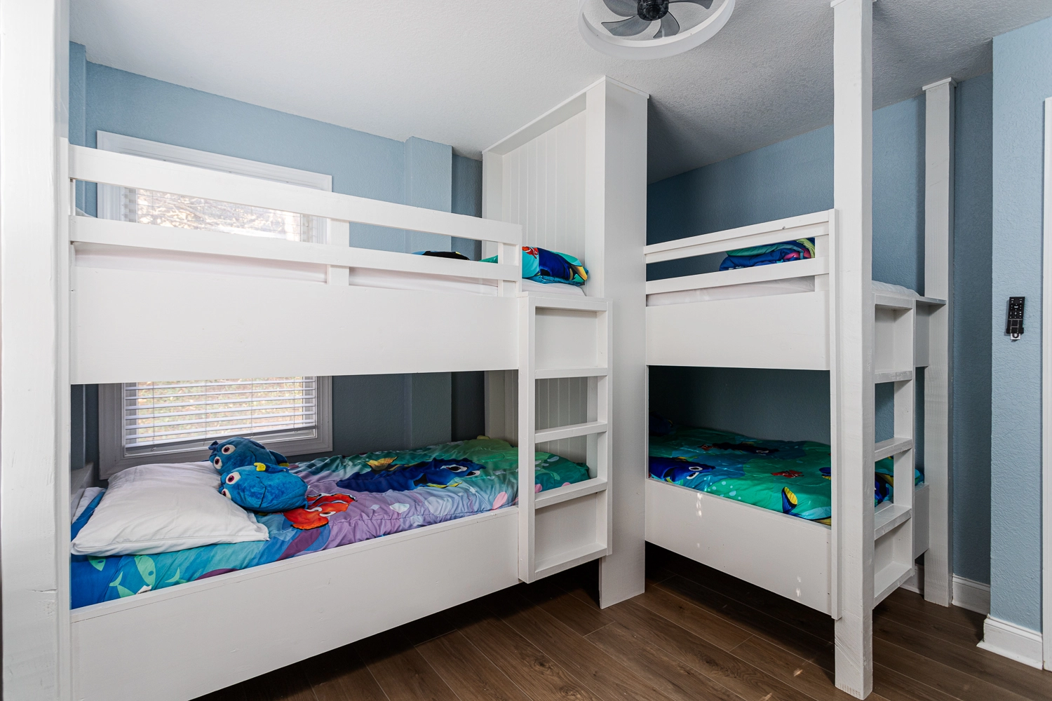 "The house was lovely and the beds were comfortable. Our grandchildren were happy to have their own rooms with a television in each bedroom. The walk to the beach was a short distance plus there was lots of activities at the house to keep the kids happy."