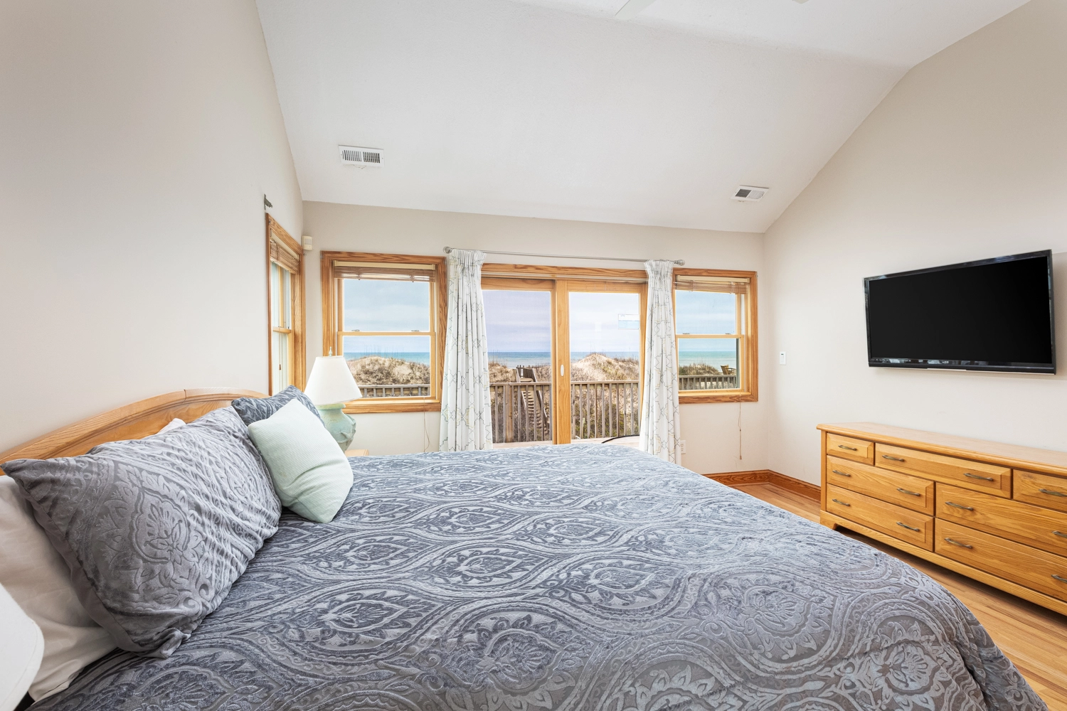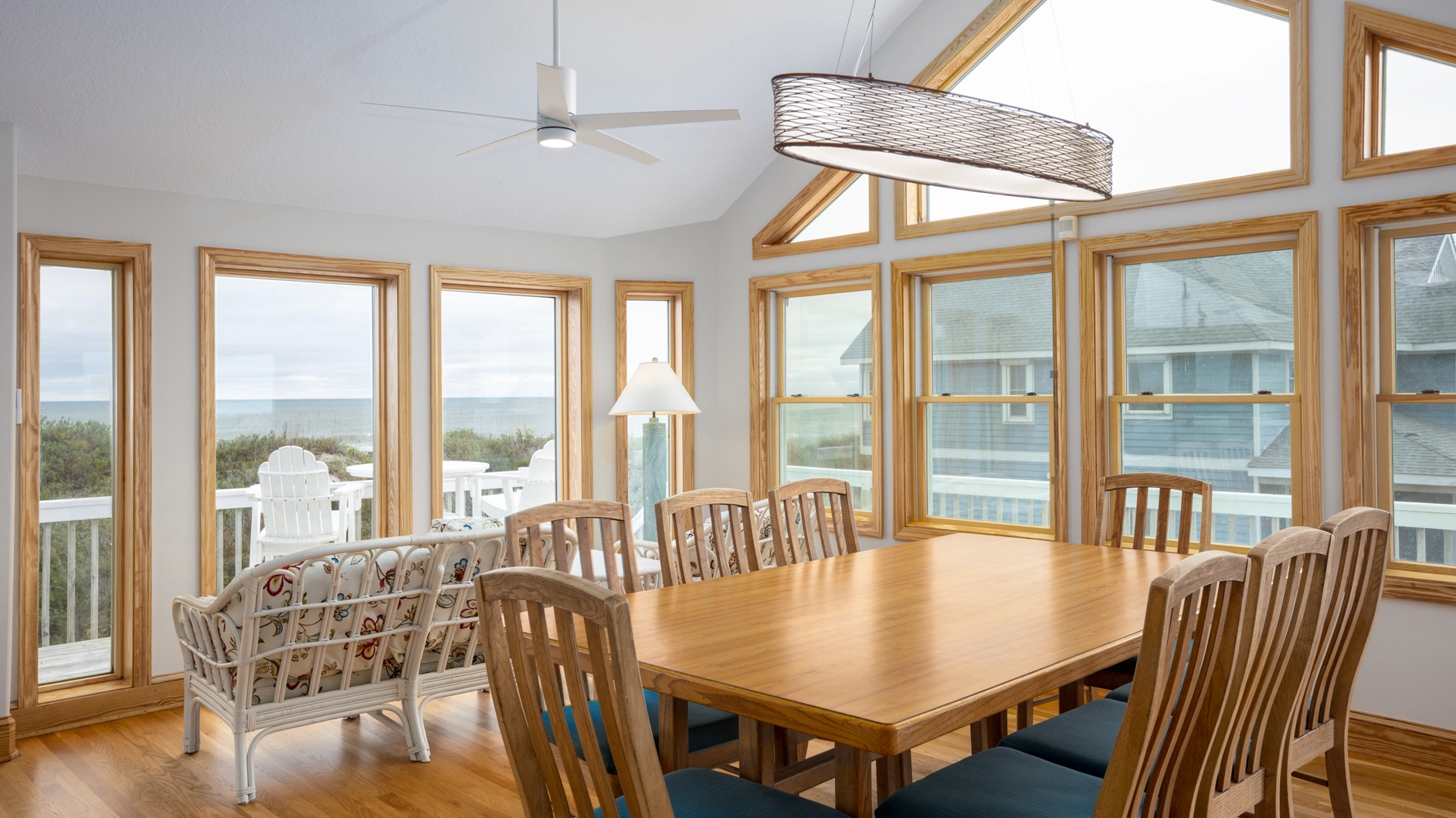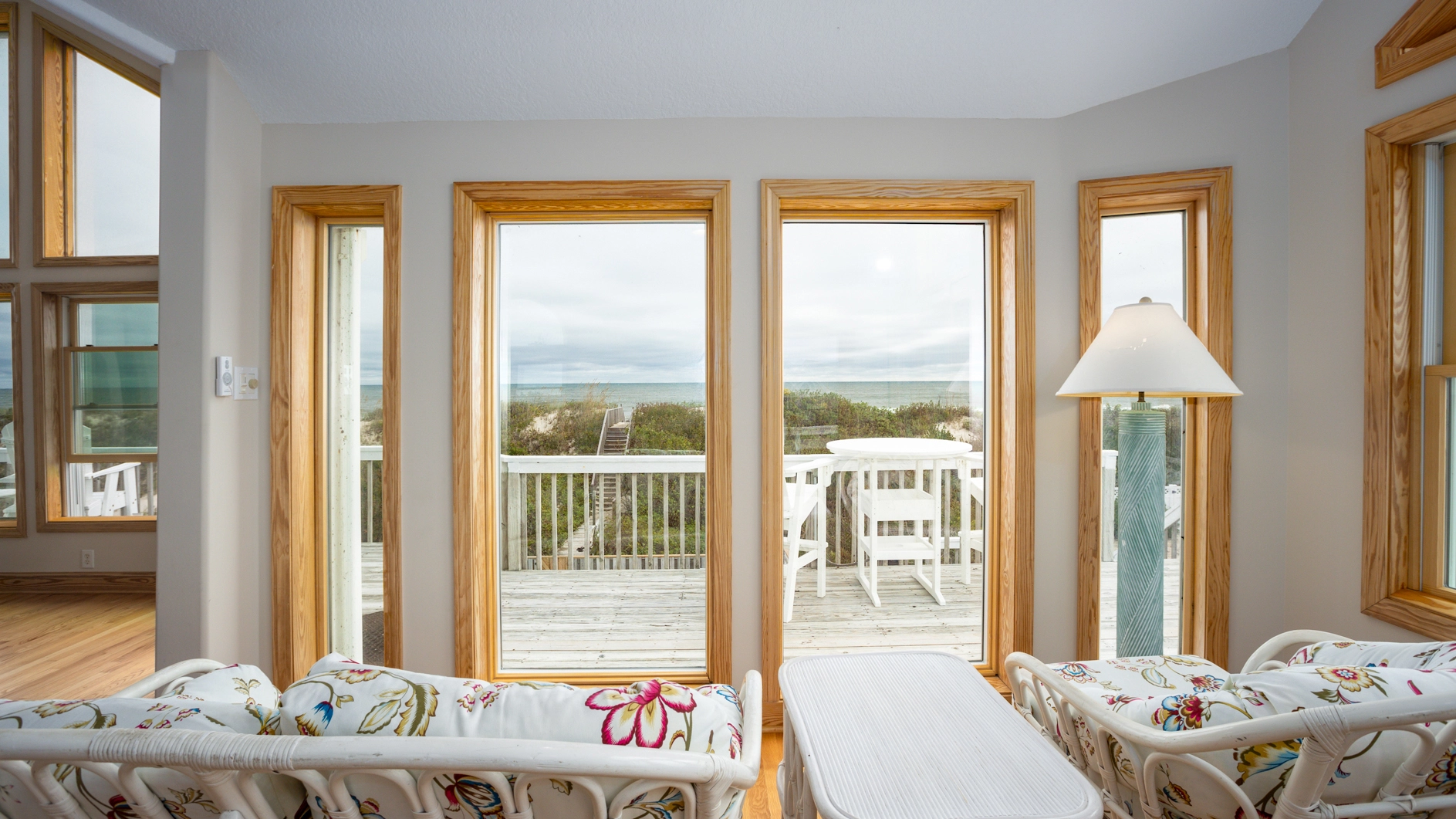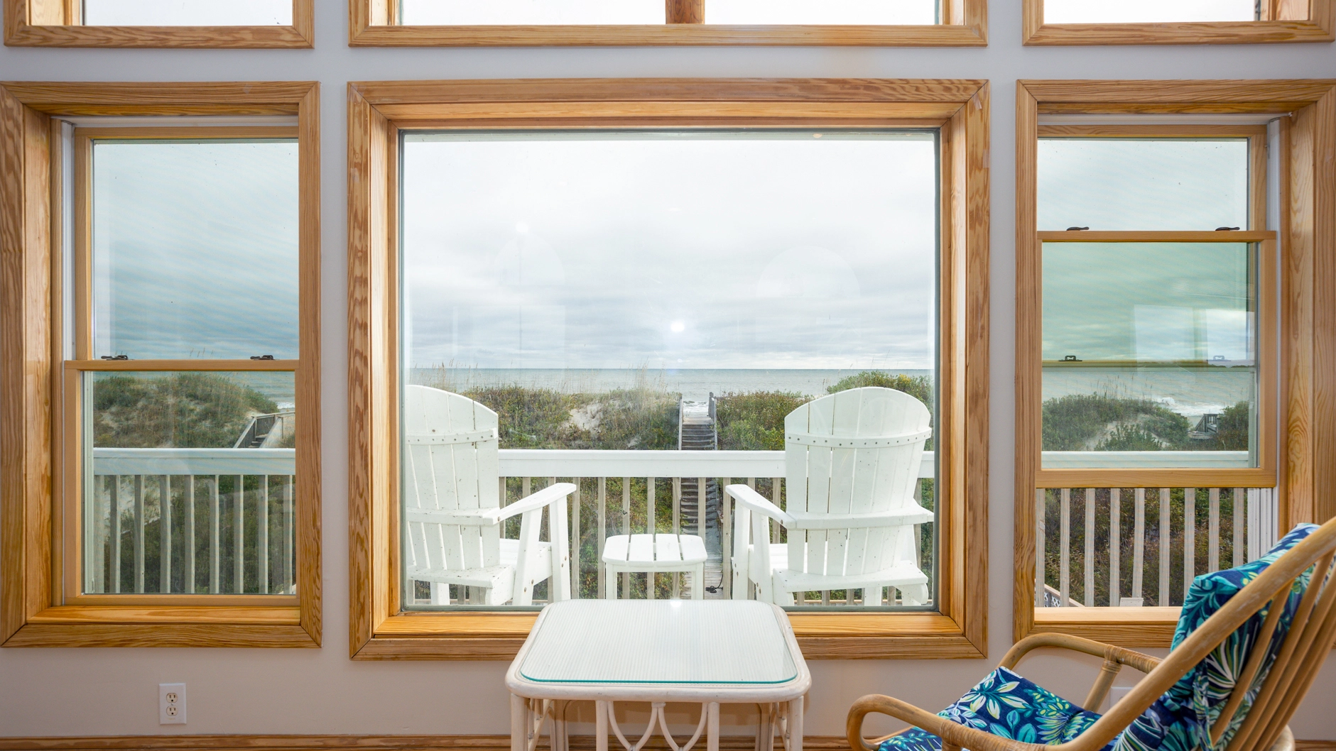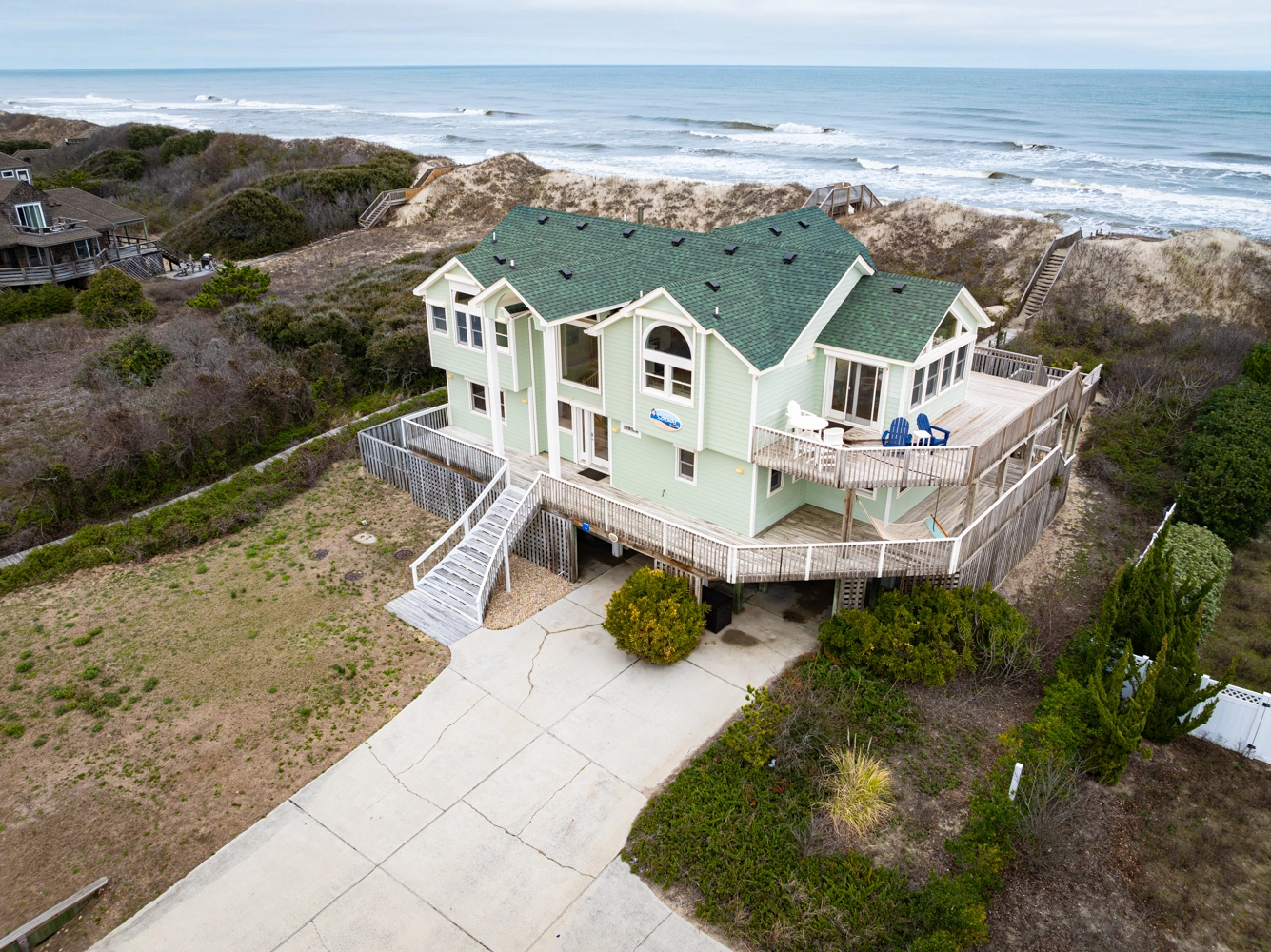 "We especially love the ocean view from the main floor and balconies as well as the "perch" on top of the dunes on which we all gather each morning to watch the sunrise and again each evening for "'wine time.""