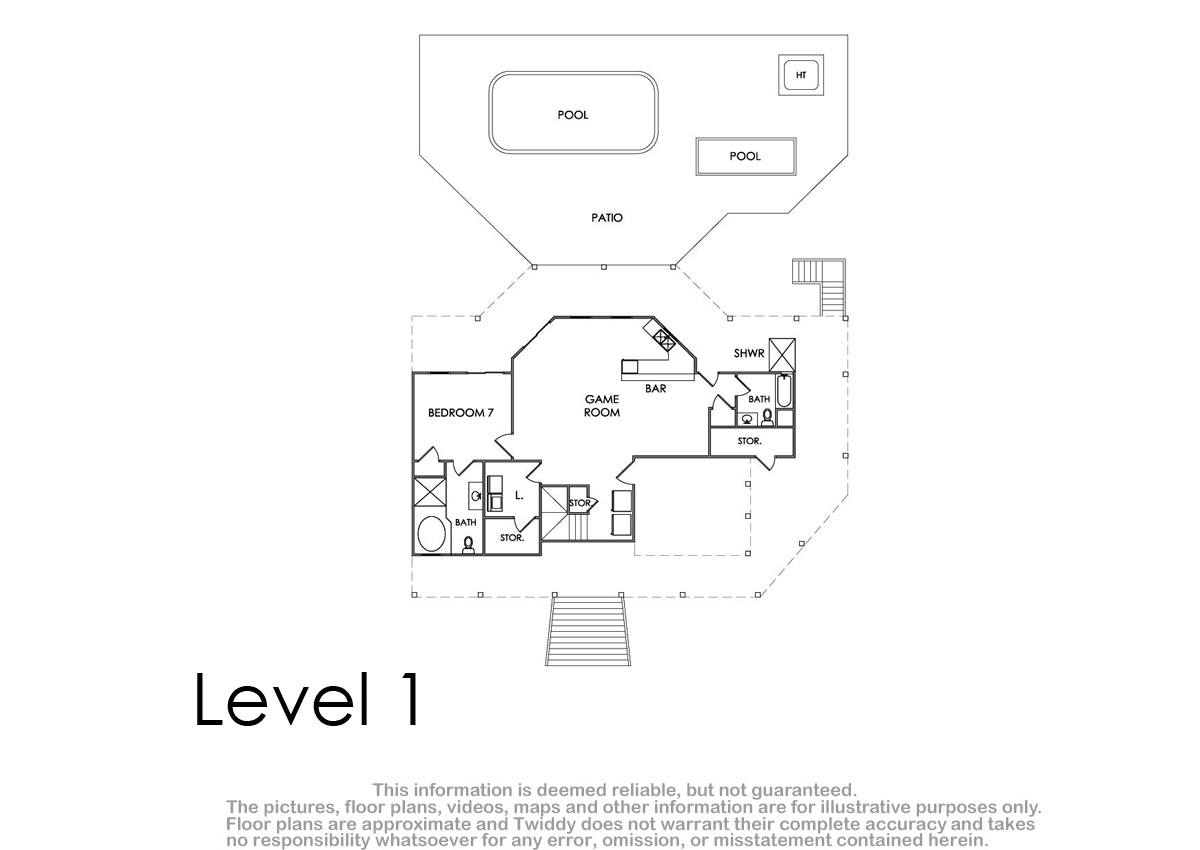 Multiple HDTVs/BluRay DVDs/VCRs, gas grill, two outdoor showers (one enclosed), keyless keypad entry.