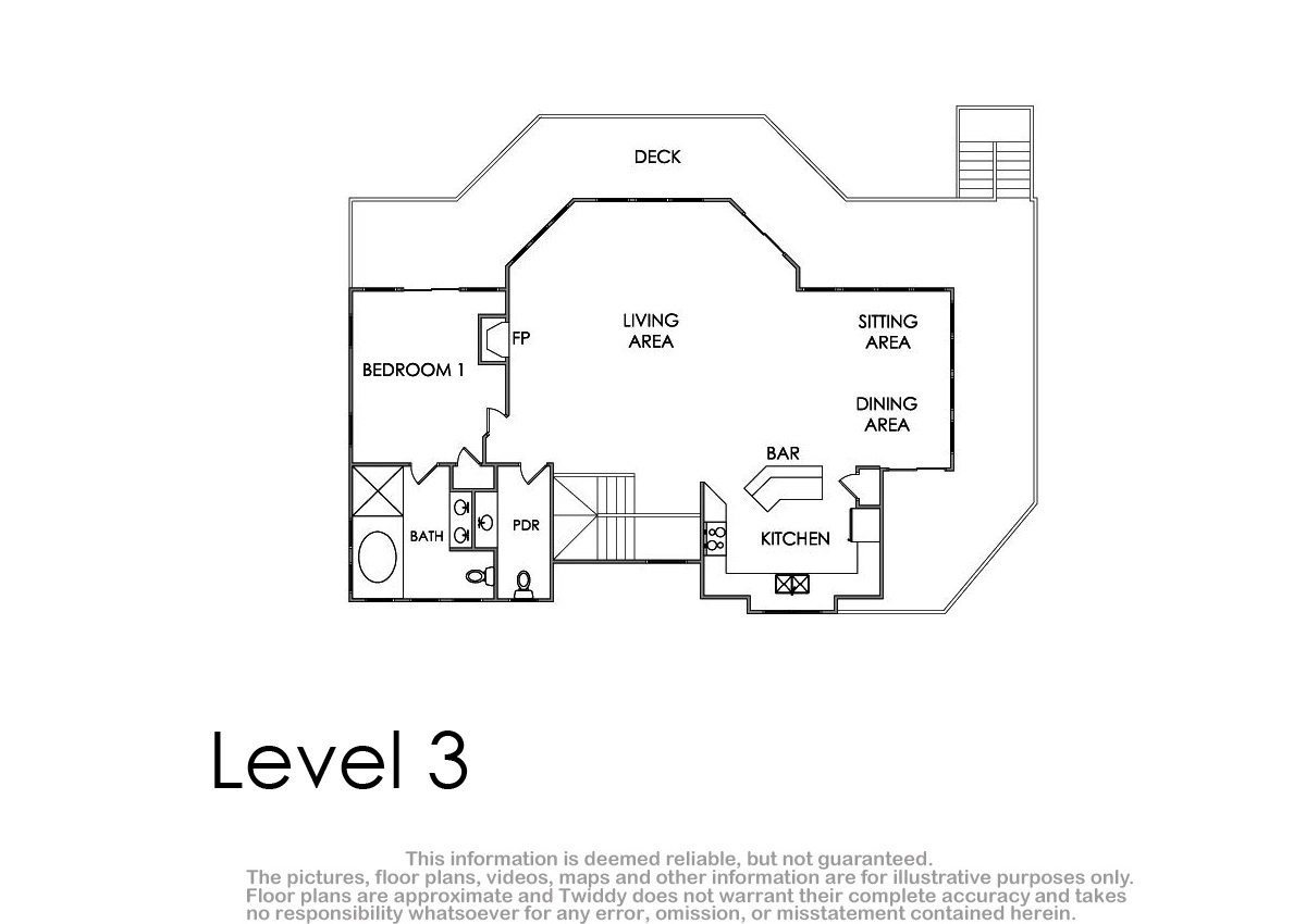 Queen, Shower/tub combo, Deck access