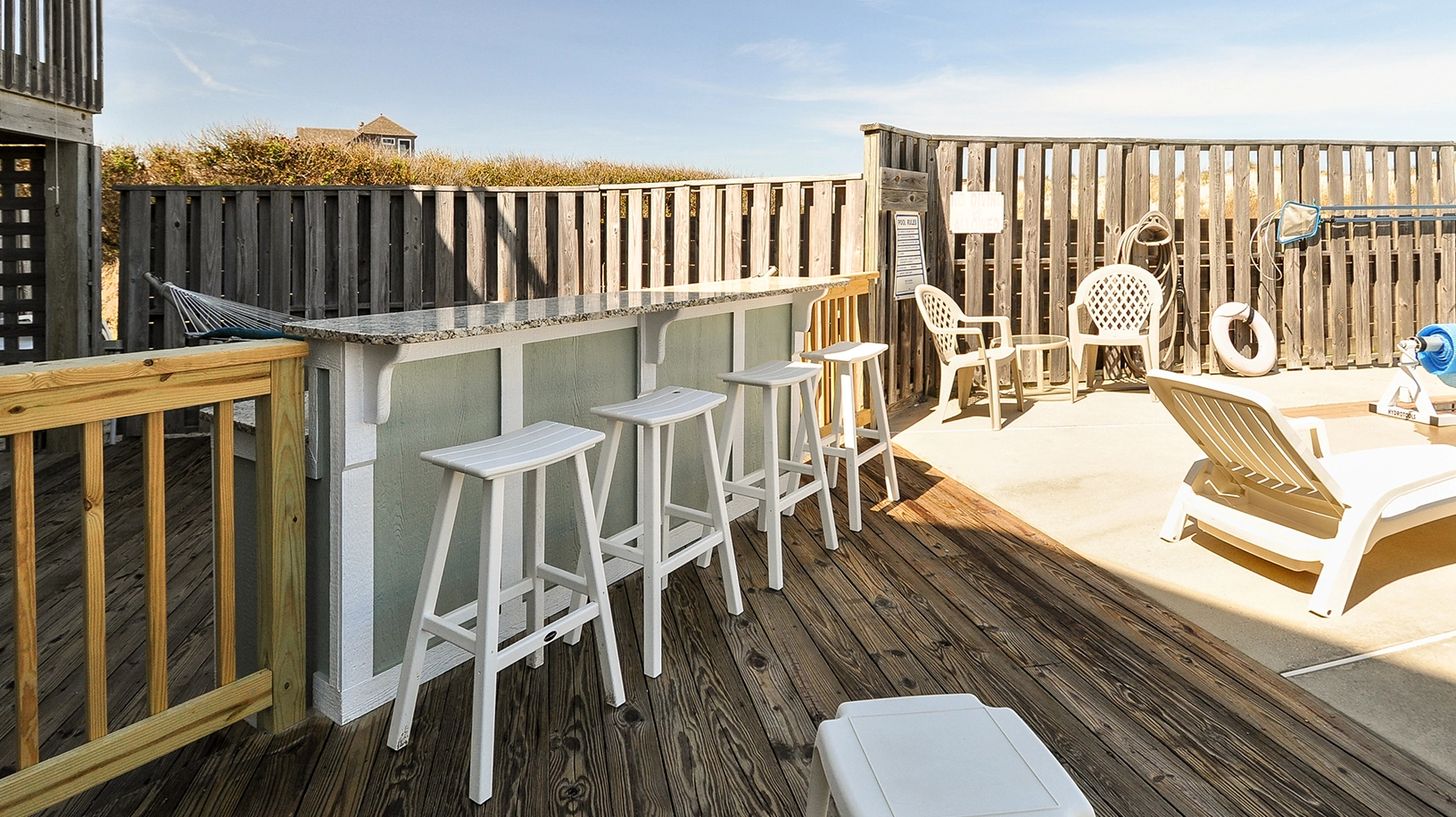 Thanks so much for your review! We will be refinishing the deck as well as making some changes to the pool area over the winter. We hope that you come back and visit Serenity Sunrise sometime in the future!