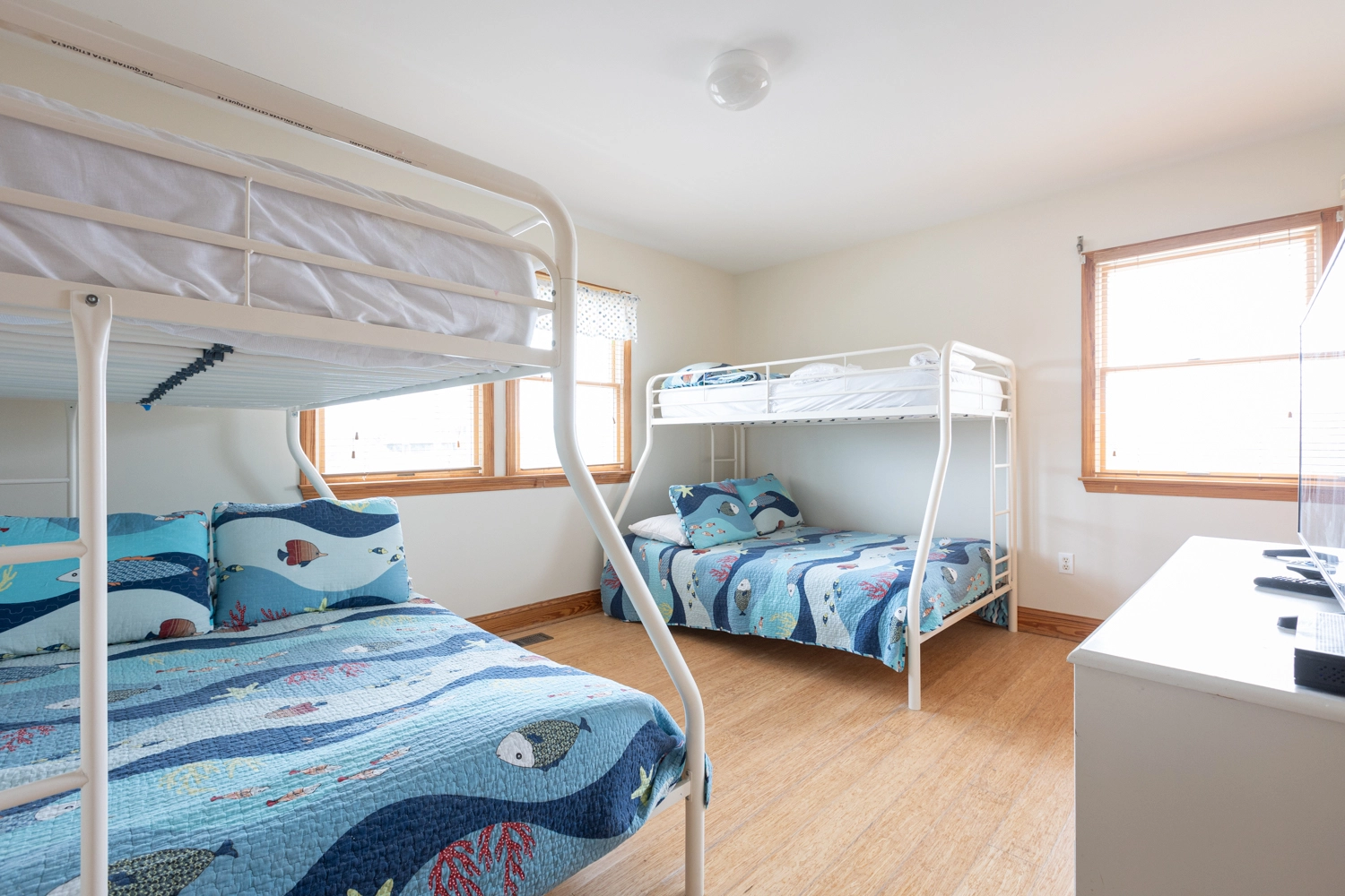 "What’s not to LOVE with 3 King Suites, 1 Queen Suite, and a bunk room for kids! The heated pool and small kiddie pool were fabulous! We also loved the easy close access to the beach."