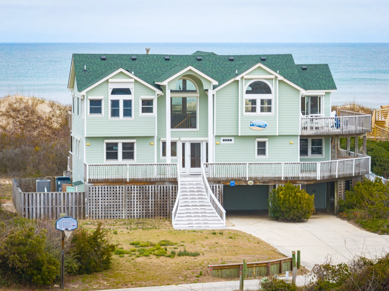 "We love the location of this beautiful oceanfront home, close to amenities, but not the crowds. Perfect for a group of adults, with each bedroom having its own en suite bathroom."