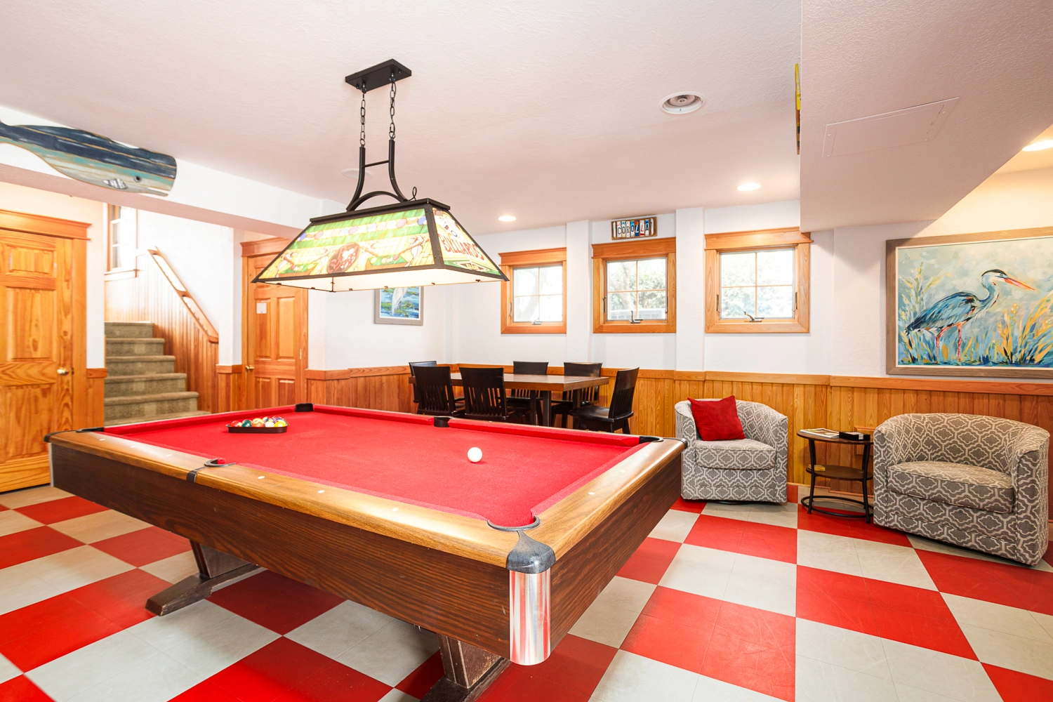 "Large pool, game room,back deck, great proximity to beach open living concept."