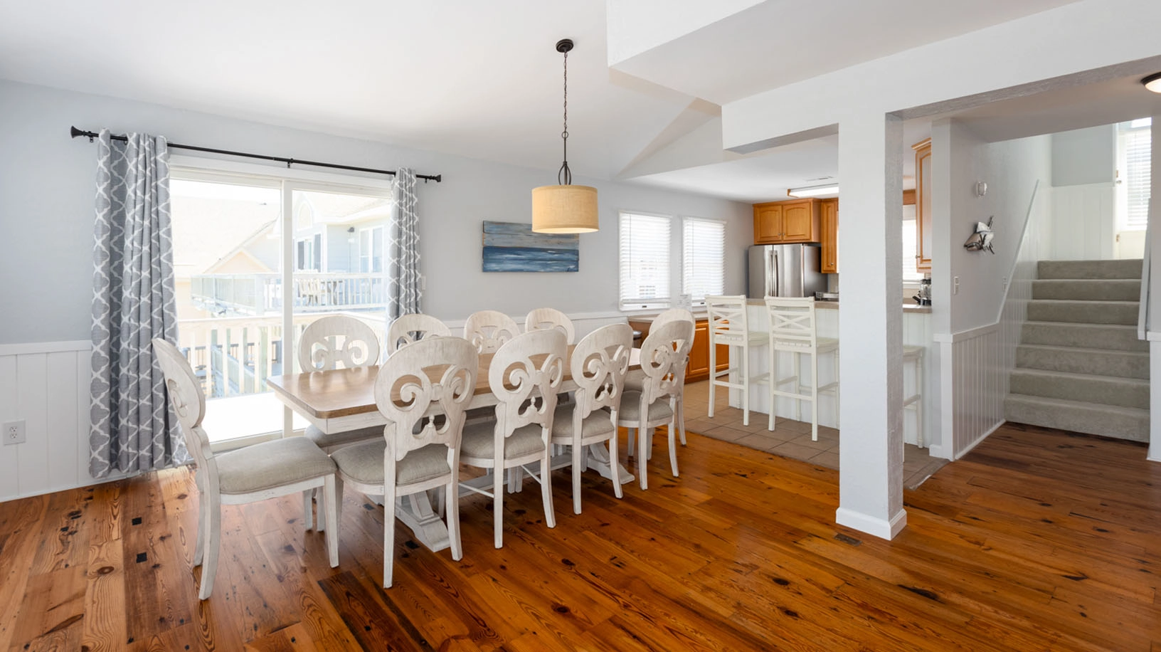 "Beautiful decks and views from the upper deck especially! We had a wonderful time at this house! The yard is perfect for dogs and the beach access is excellent"
