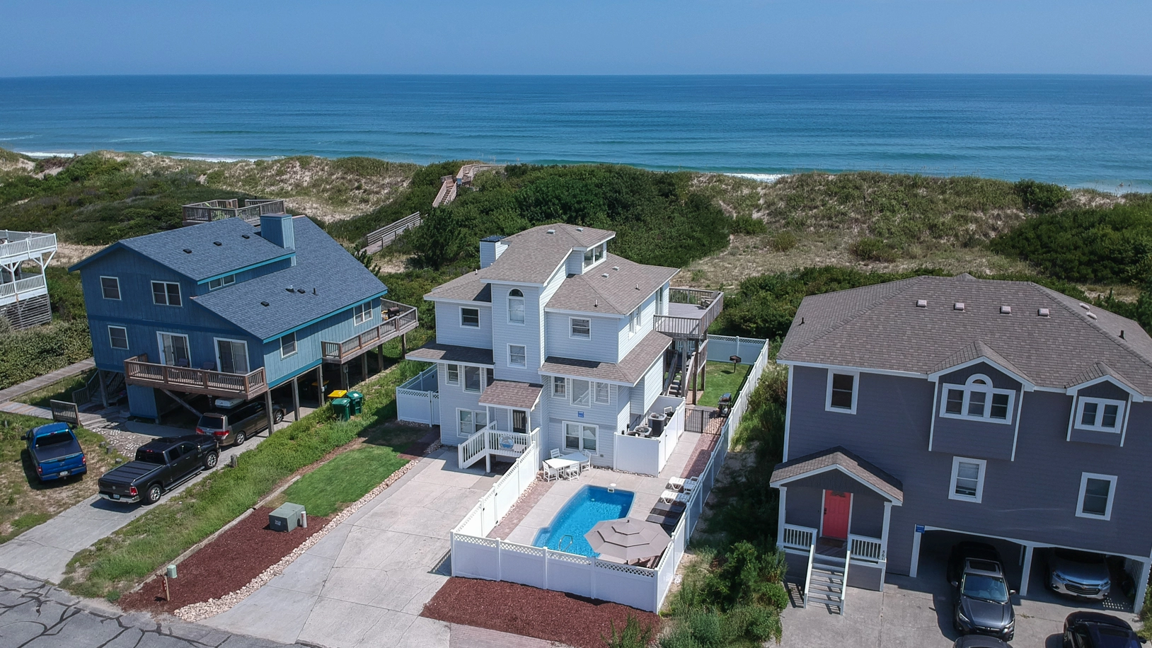 "I highly recommend this home! In response to the four star rating, yes the pool is small, but so perfect for the little ones. The stairs to the beach are steep, but even our neurologically impaired German Shepard was able to manage after a day of practice. We are older but very fit so someone with a physical challenge might find the way down to the beach very difficult. The home is great if you have dogs, they were at home in the fenced in yard, though our chihuahua mix could army crawl under the front gate. We blocked it off with a boogie board to keep her from escaping. The kitchen is amazing and the home is comfy and cozy. We have been vacationing with Twiddy since the eighties and we cannot wait to return to this home again! Five stars!!"