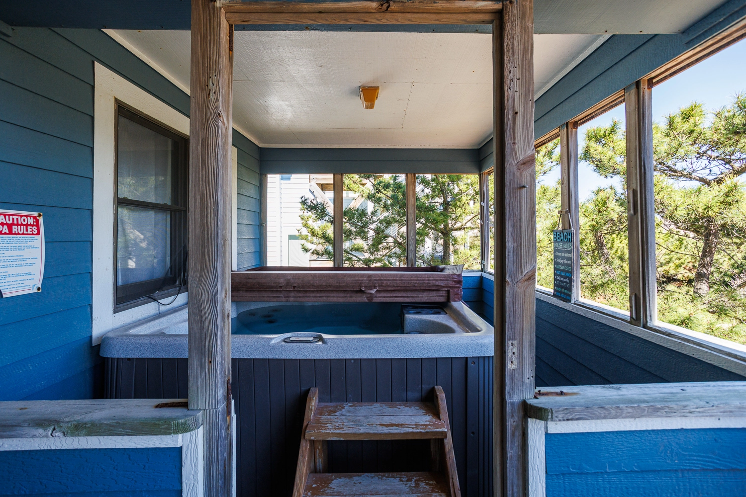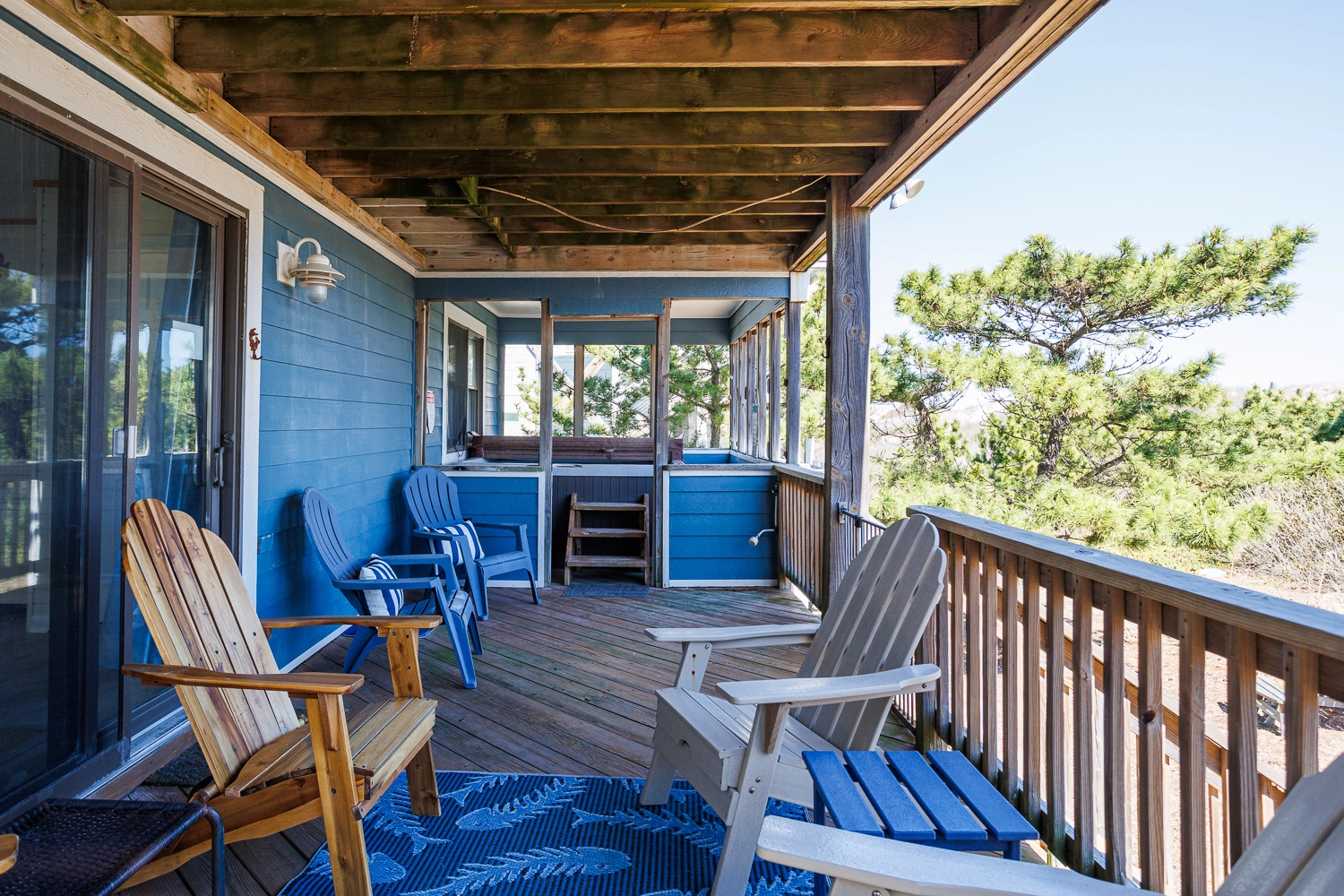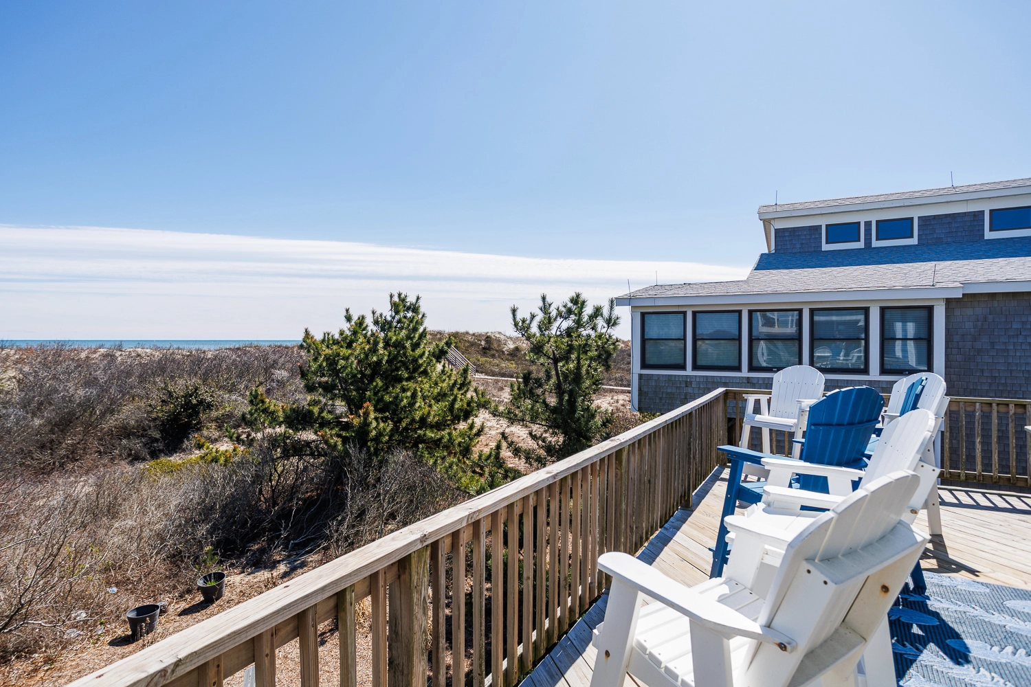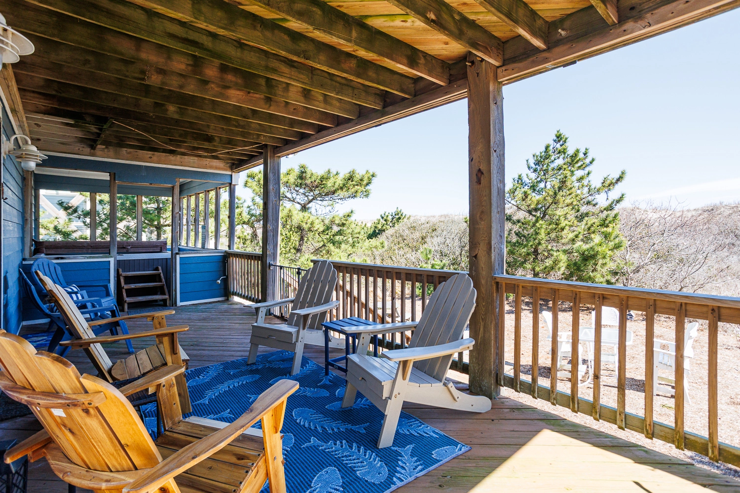 Spend your days lounging on the decks to feel the salty breezes. Gaze at the Atlantic while enjoying meals together in the dining room, relaxing in the great room, and preparing meals in the kitchen. Meander to the nearby beach access to visit the ocean’s edge, and spend quiet evenings soaking in the warm, relaxing comfort of your private hot tub.