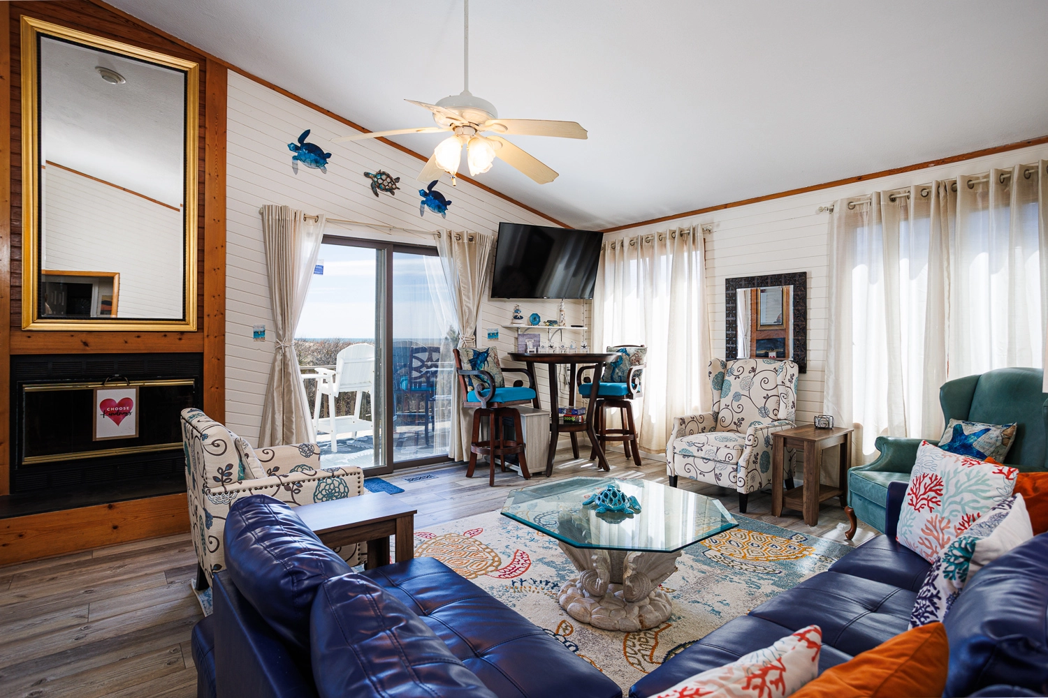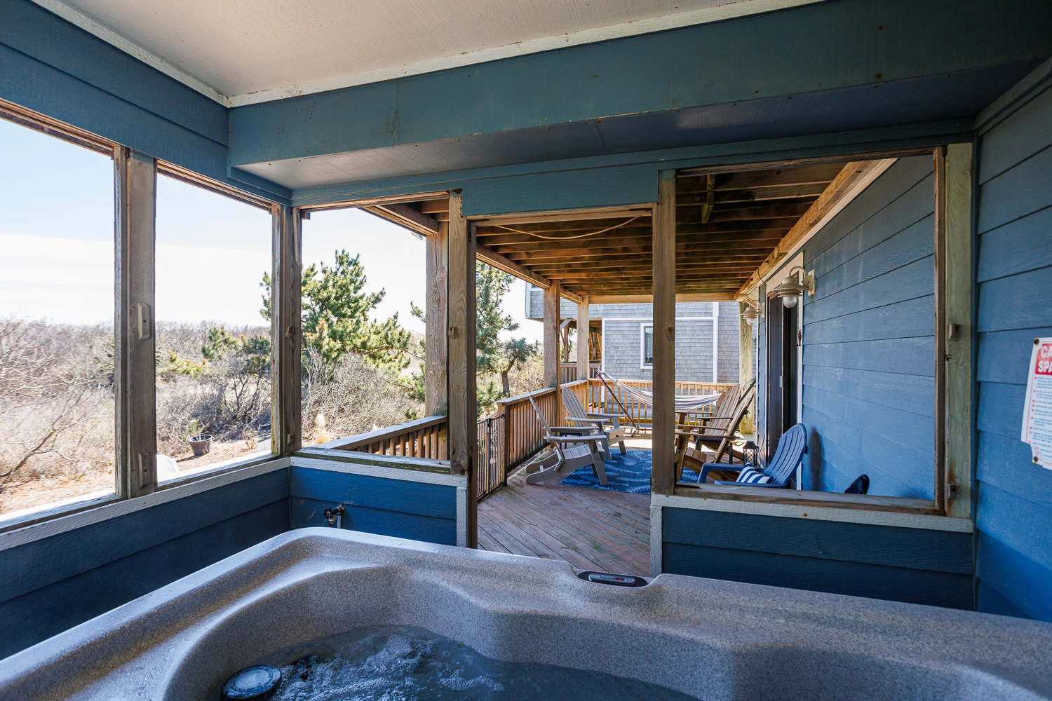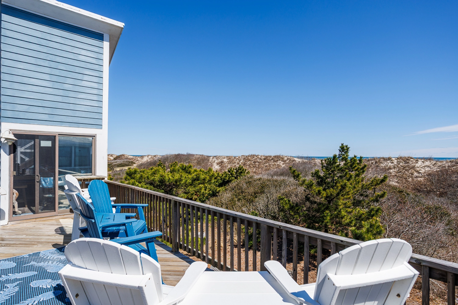 Spend your days lounging on the decks to feel the salty breezes. Gaze at the Atlantic while enjoying meals together in the dining room, relaxing in the great room, and preparing meals in the kitchen. Meander to the nearby beach access to visit the ocean’s edge, and spend quiet evenings soaking in the warm, relaxing comfort of your private hot tub.