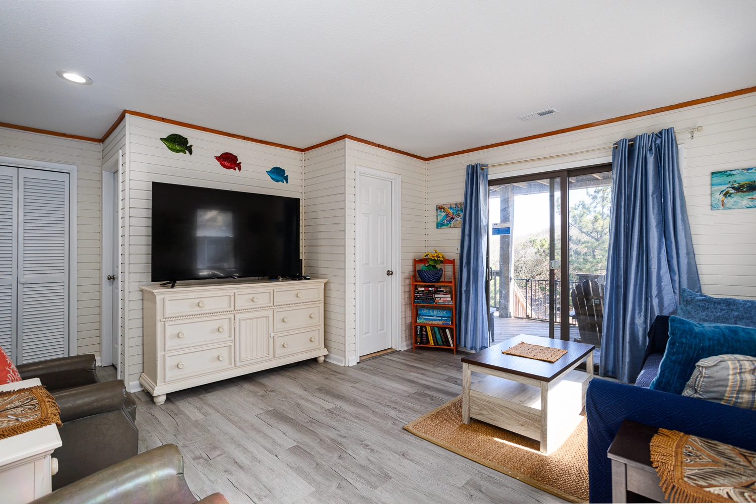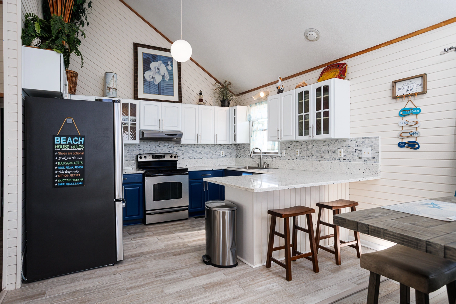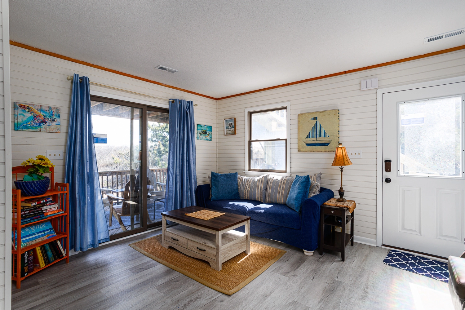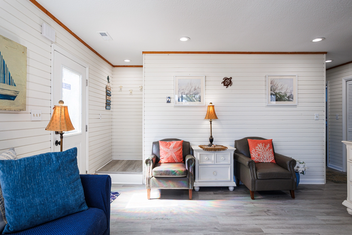 Spend your days lounging on the decks to feel the salty breezes. Gaze at the Atlantic while enjoying meals together in the dining room, relaxing in the great room, and preparing meals in the kitchen. Meander to the nearby beach access to visit the ocean’s edge, and spend quiet evenings soaking in the warm, relaxing comfort of your private hot tub.