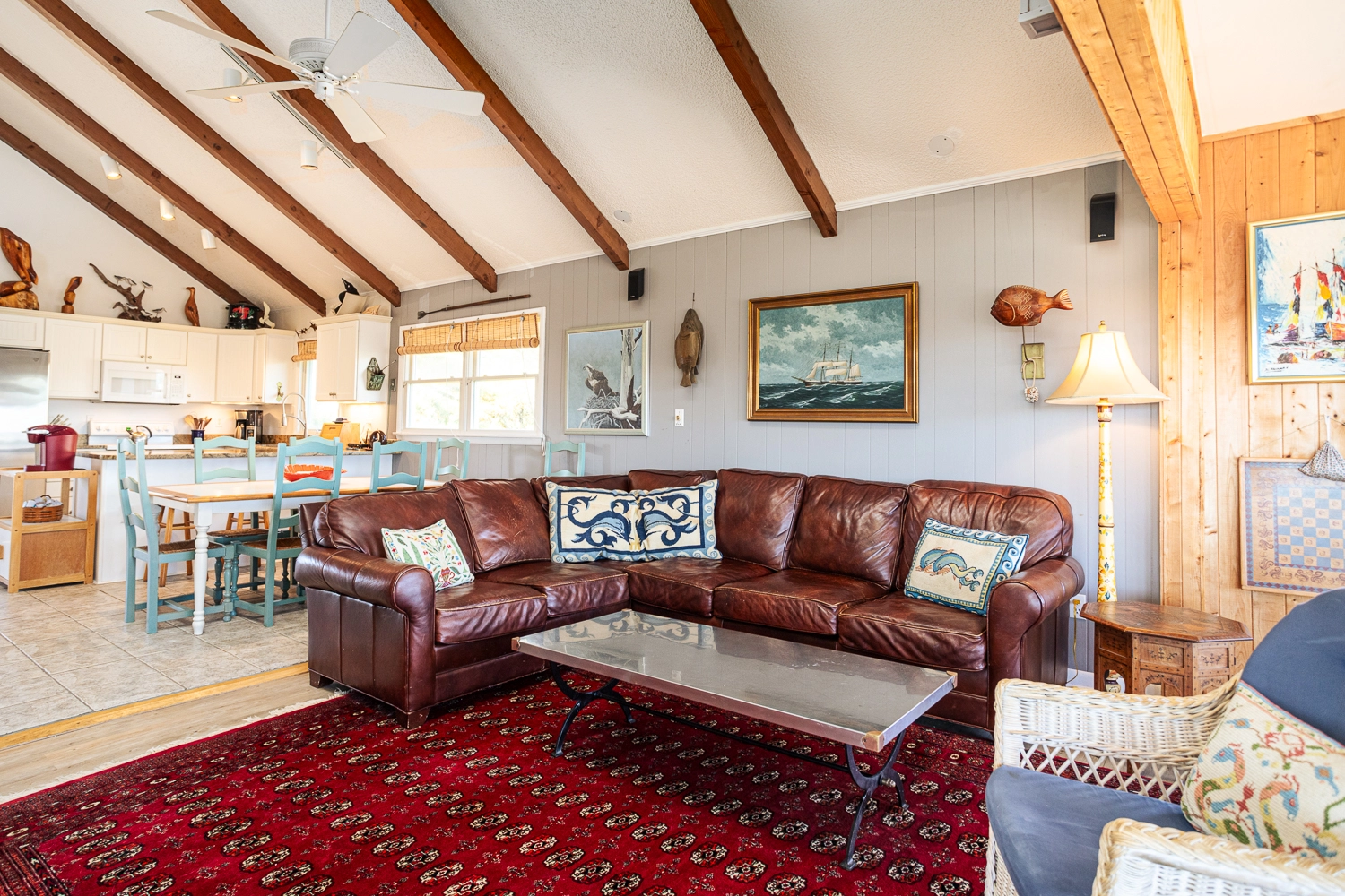 "The leather couch was nice. The kitchen was good with supplies for cooking. The AC upstairs works really well."