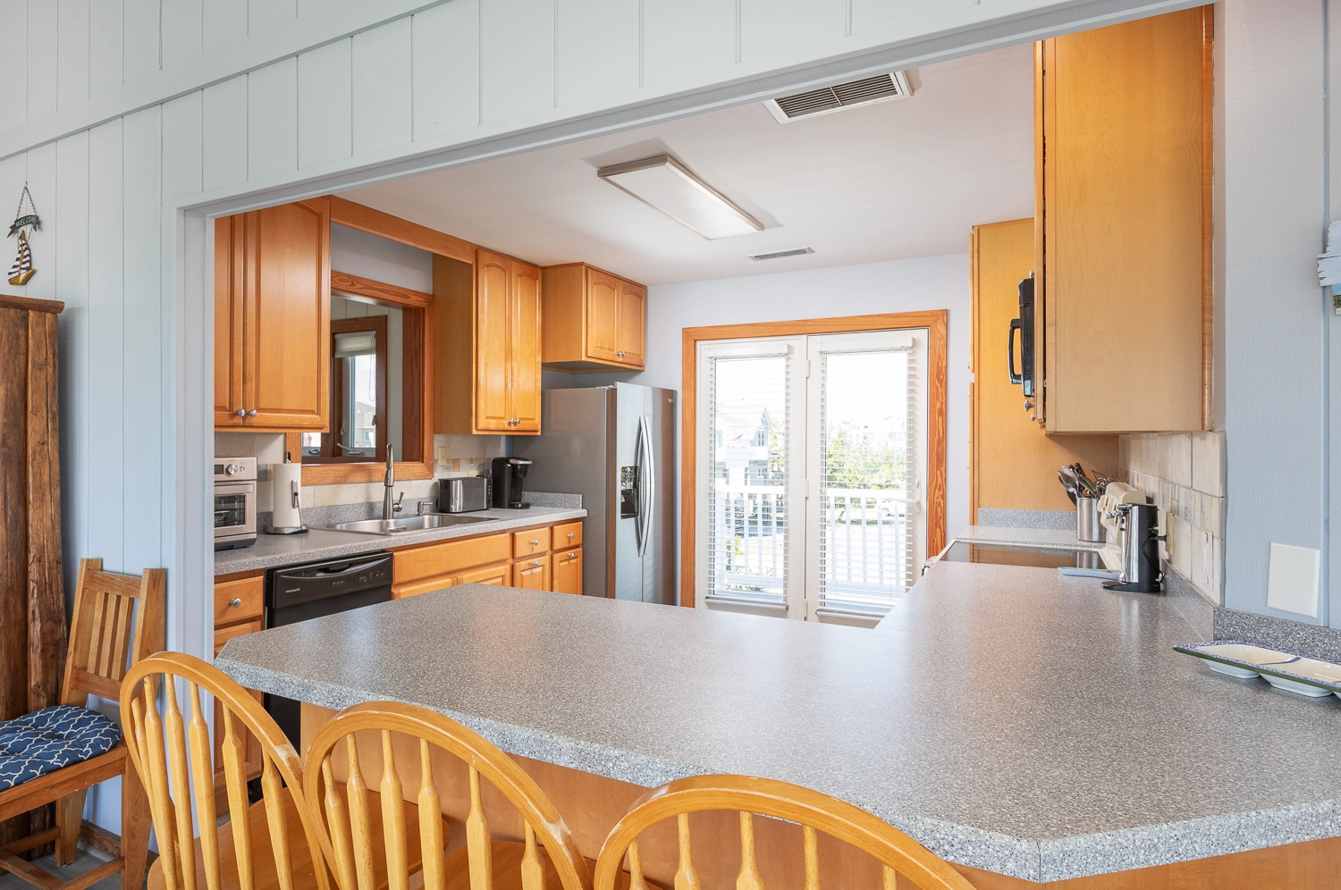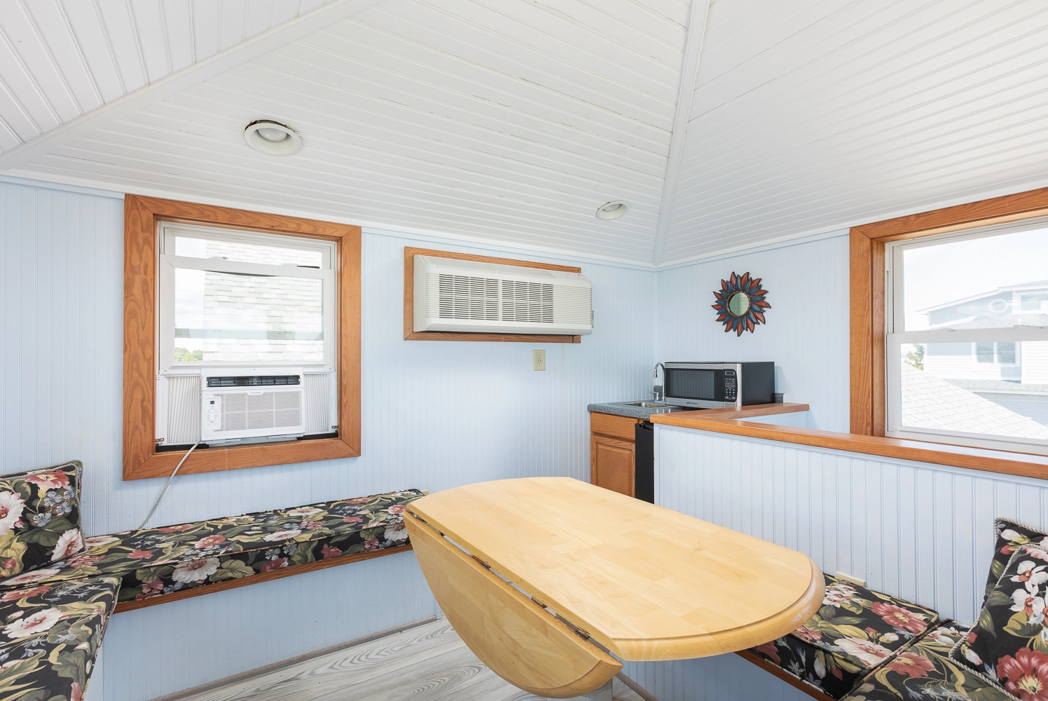 Sitting area with wet bar.