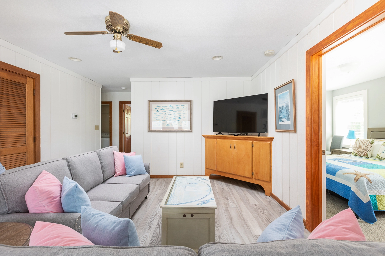 Sitting area; laundry.