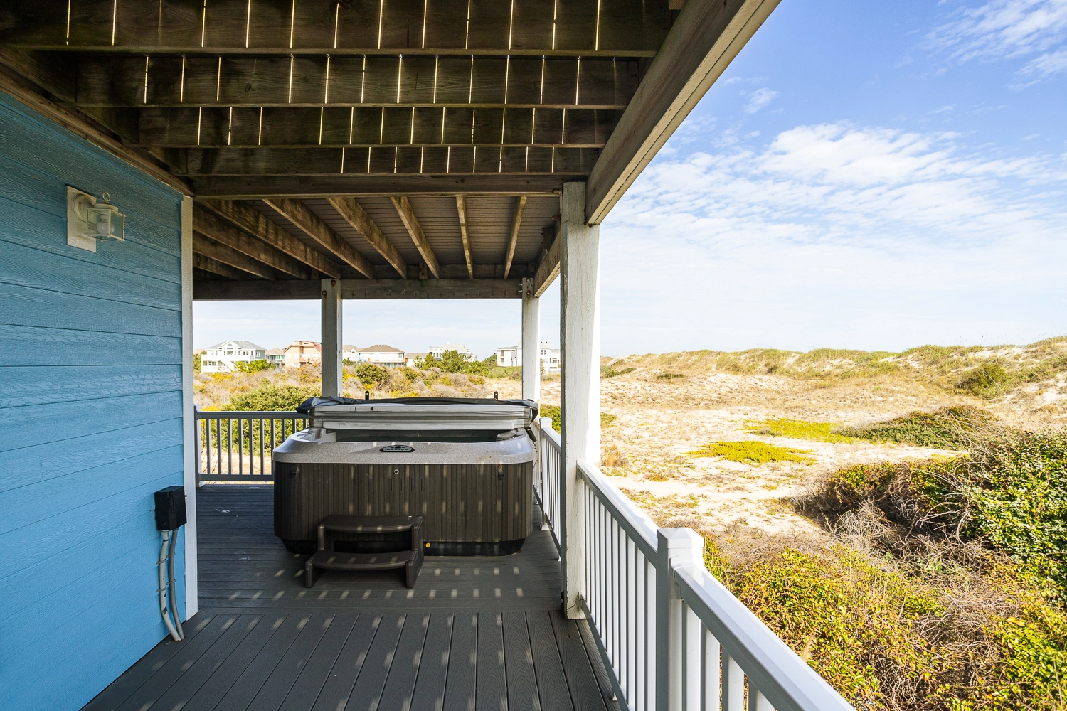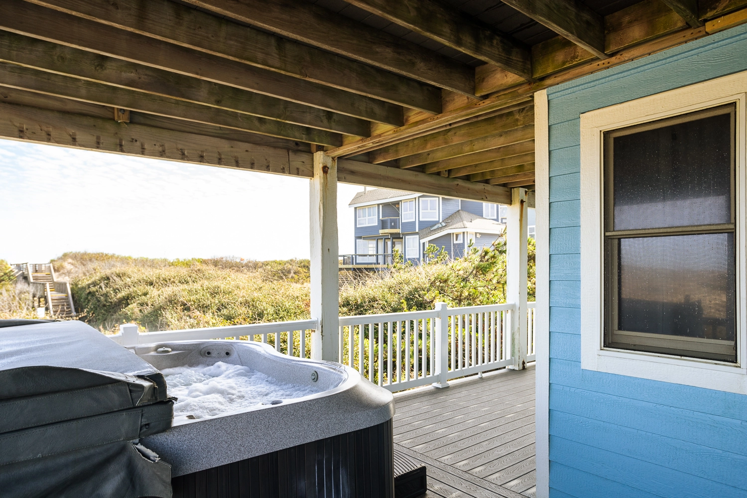"We always love the views and the proximity to the beach. The large upstairs room is perfect for eating, reading, and gathering. The hot tub is a huge hit with our younger friends."