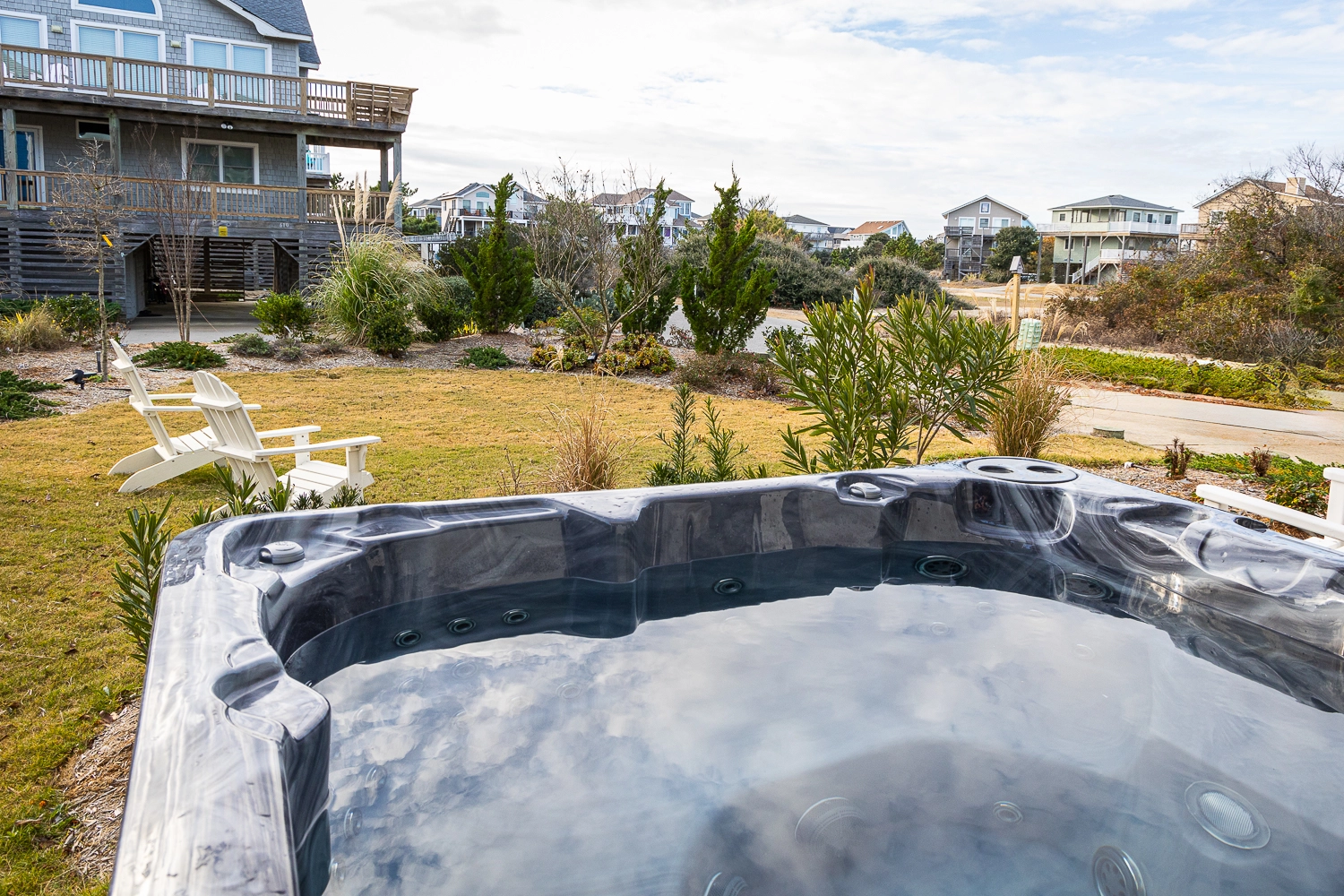Outside shower. Hot tub.