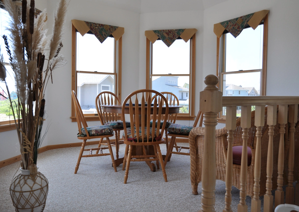"We had three generations staying at this beach house. We all had our own bedroom with a private bathroom. There was enough eating space around the dining table for our party of nine. We also enjoyed the breakfast loft where we could see a bit of the ocean. We loved the ice machine and the two refrigerators in the house (well needed). We loved the hot tub on the same level and near the pool so we could watch the kids in the pool at the same time relax in the hot tub. We were so close to the beach access that if we forgot something, we could go back for it easily. The stairs to the beach did prevent taking a beach cart. You do have to carry everything by hand, but we were so close, it didn't matter. We liked the location of the house because it was convenient to the grocery store, as well as being close to the beach. All of my family members said they would love to come back and stay at this house. We had a wonderful time."