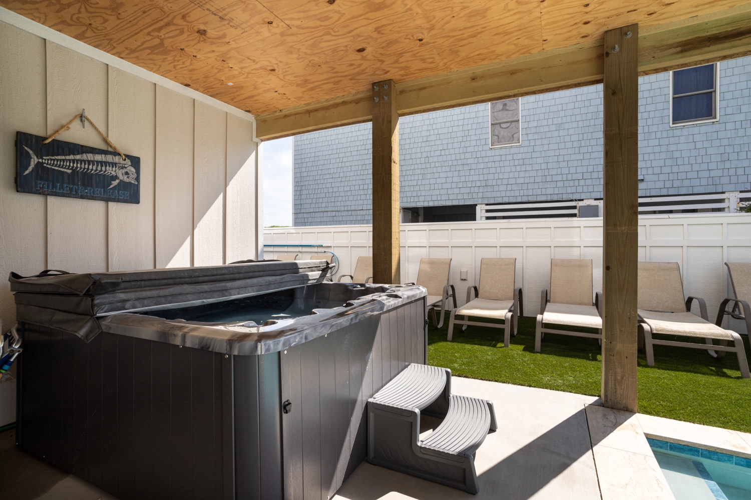 "Brand new house was a treat. Loved the close distance to beach and the view from upper level. Also loved the pool area with the artificial turf. Especially that it gets shade in the afternoon and has lots of seating. Having the 2 refrigerators in kitchen and another downstairs was great as well as the two stoves."