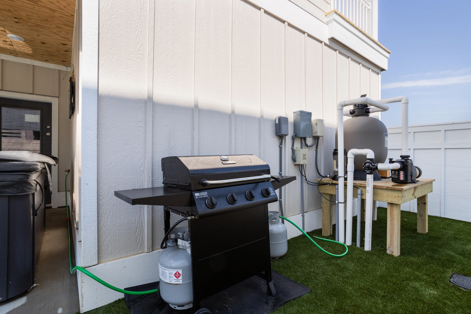 Elevator, private pool, hot tub, gas grill.
