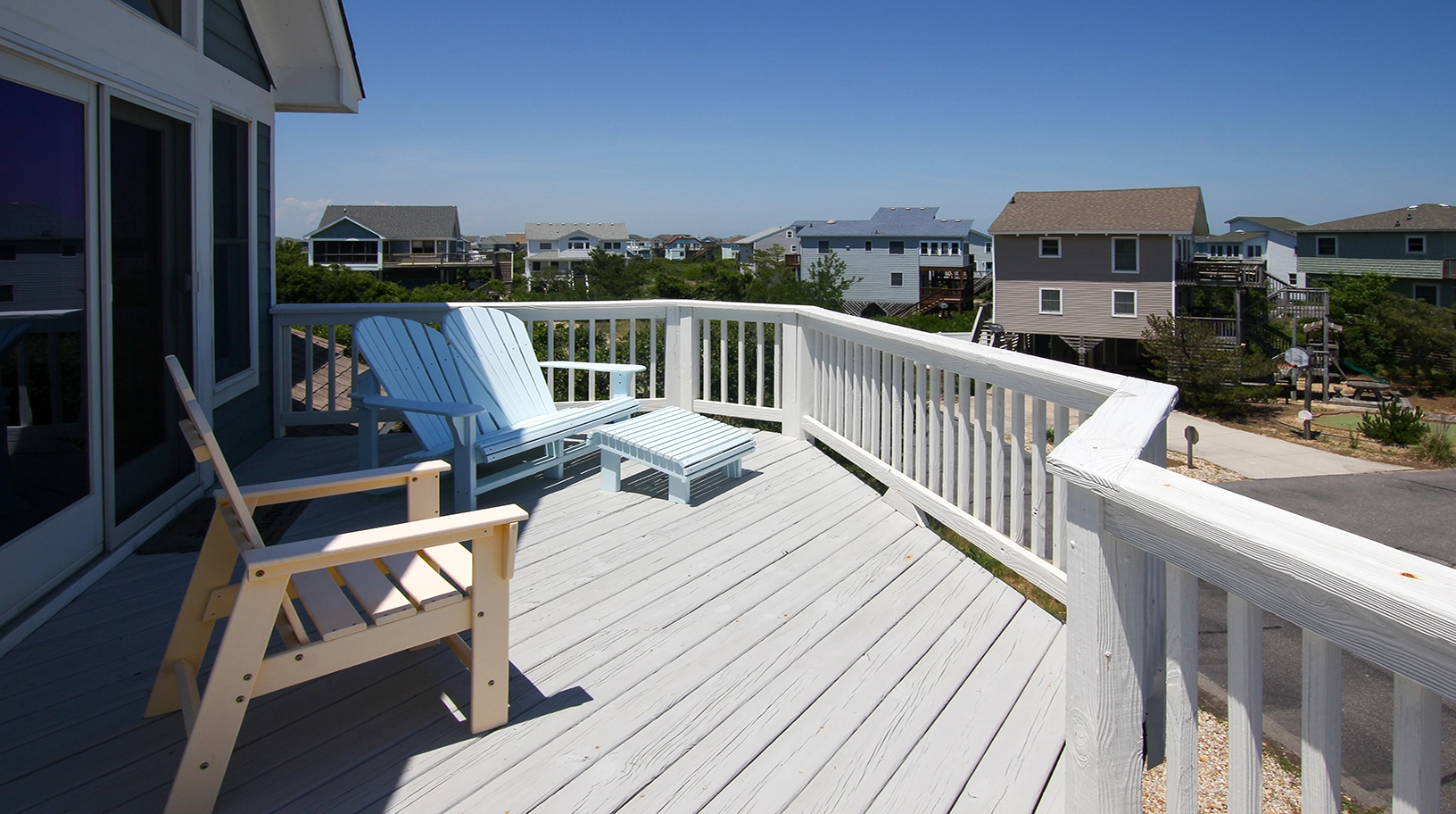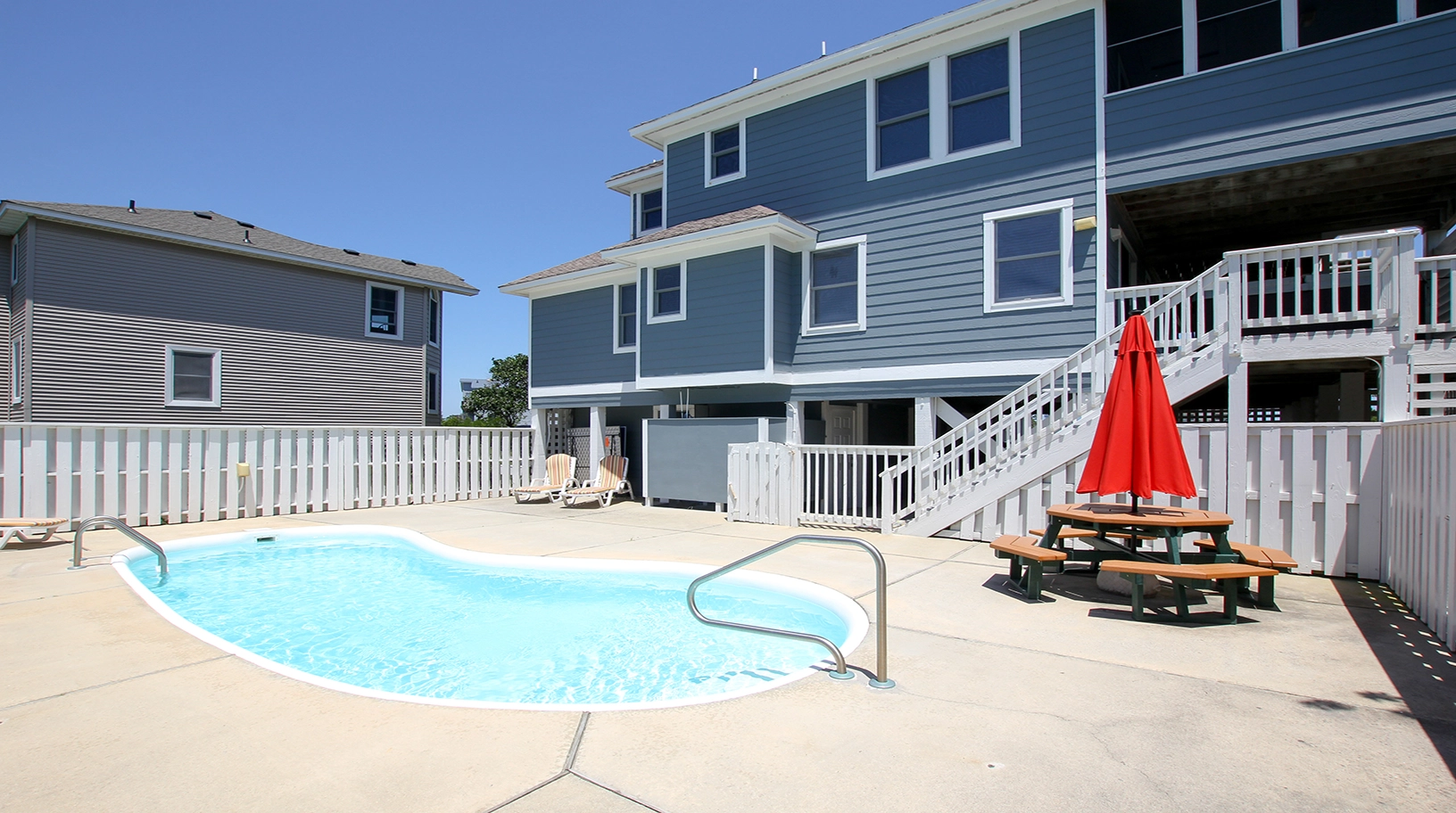 "This has been the 4th season we have rented this vacation house. At present our family size requires 4 king/queen bedrooms and a room with 4 bunk beds. We have a total of 6 kids ranging in age from 2 1/2 to 8. The arrangement of this hose works out fine for us since 4 kids can utilize the bunk bedroom and the lower bedroom on 1st floor has an outside area outside the bedroom where the other 2 kids can sleep. Right now, this house serves all our needs with adequate sleeping arrangements, nice size dining area and family room area. There is also a loft area if someone wants to read a book, etc. The pool was used twice a day and beach access is an easy distance walk to the start of the walkway that leads over the dunes. The house is also fairly close to the Harris Teeter grocery store and other shops."