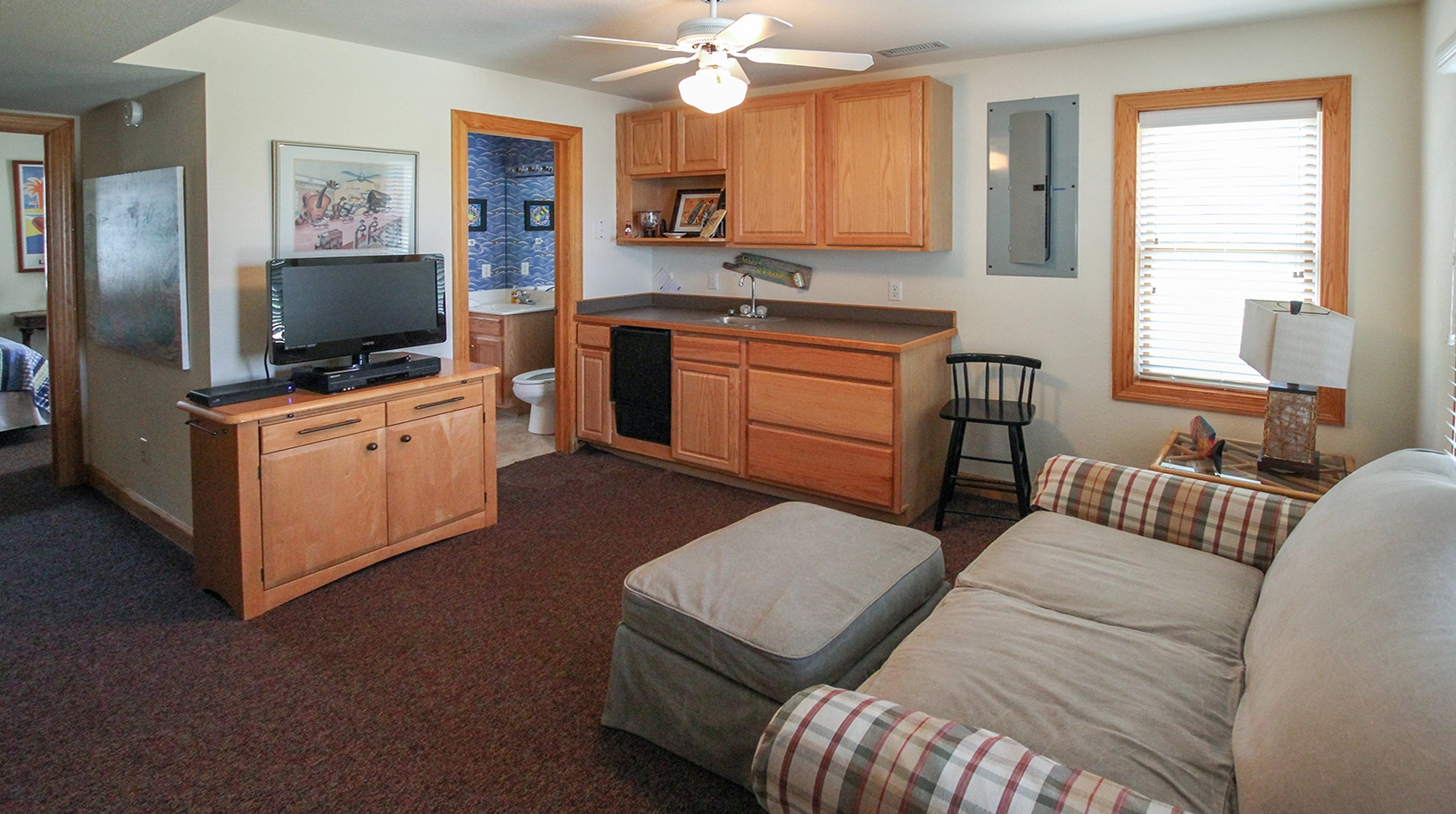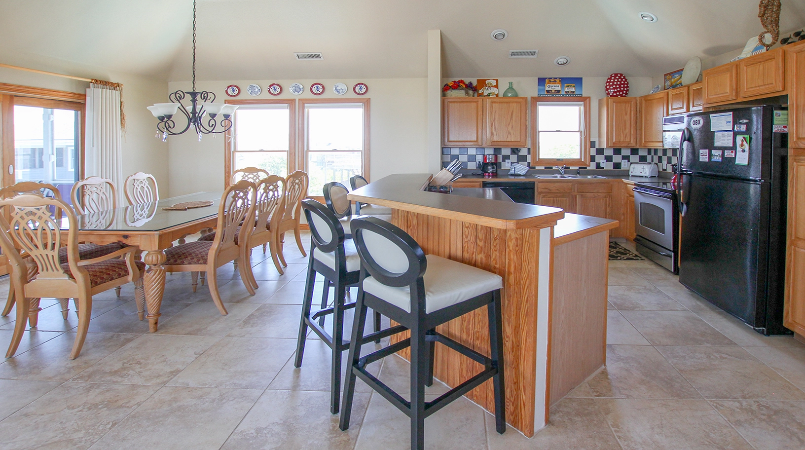 "Kitchen is well stocked with equipment. New Fridge is an improvement. The place is just right for the number of people we usually have in attendance at our annual vacation and we have settled on Williams as our preferred rental house. Only a block away from the beach. Great rates."