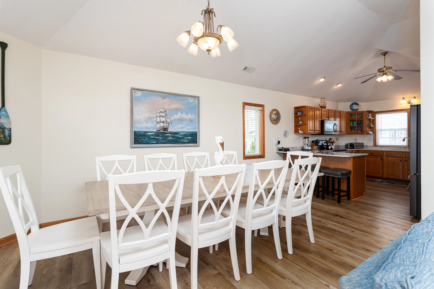 "We had an entire group of 14 and this has been one of our favorite trips. All of the amazing features made our group very pleased and excited to book again. We were extraordinarily happy that it was placed right by herris teater as that was very easy for our group to shop when needed. Love me some teater. The house had everything that was needed and all of the rooms were amazingly placed. The only thing that we could say was a minus was the room that had two bunk bed sets in the basement. A normal bedroom may have been easier for our group but it worked out anyways so no worries. Where the house was set was absolutely amazing and we could not have asked for anything better. We appreciate all of the things that Twiddy has set up in the houses and we thank all of the Twiddy workers. Thank you for making our vacation EXCELLENT!"