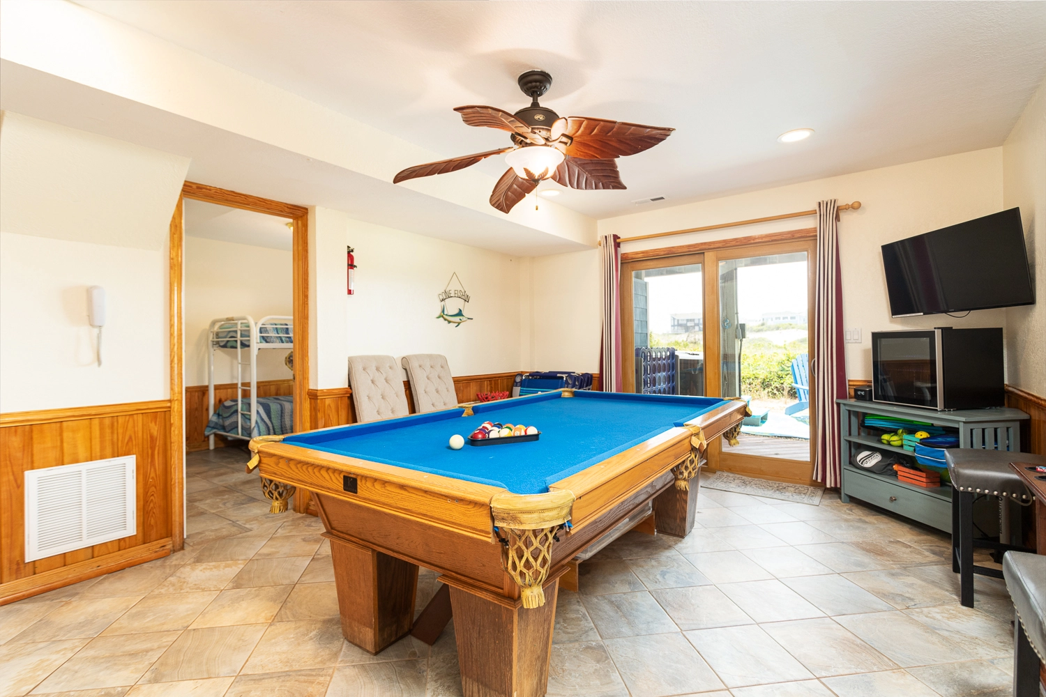 Rec room with pool table.