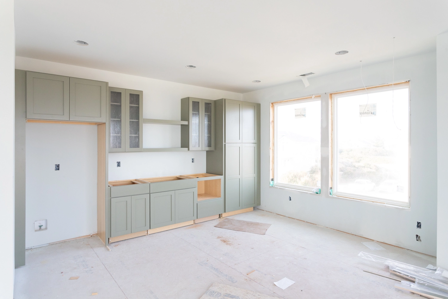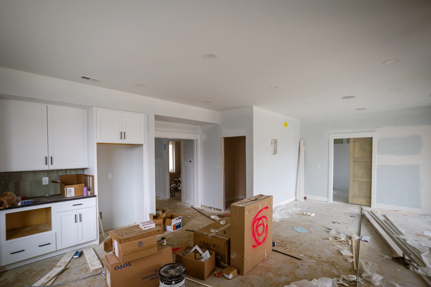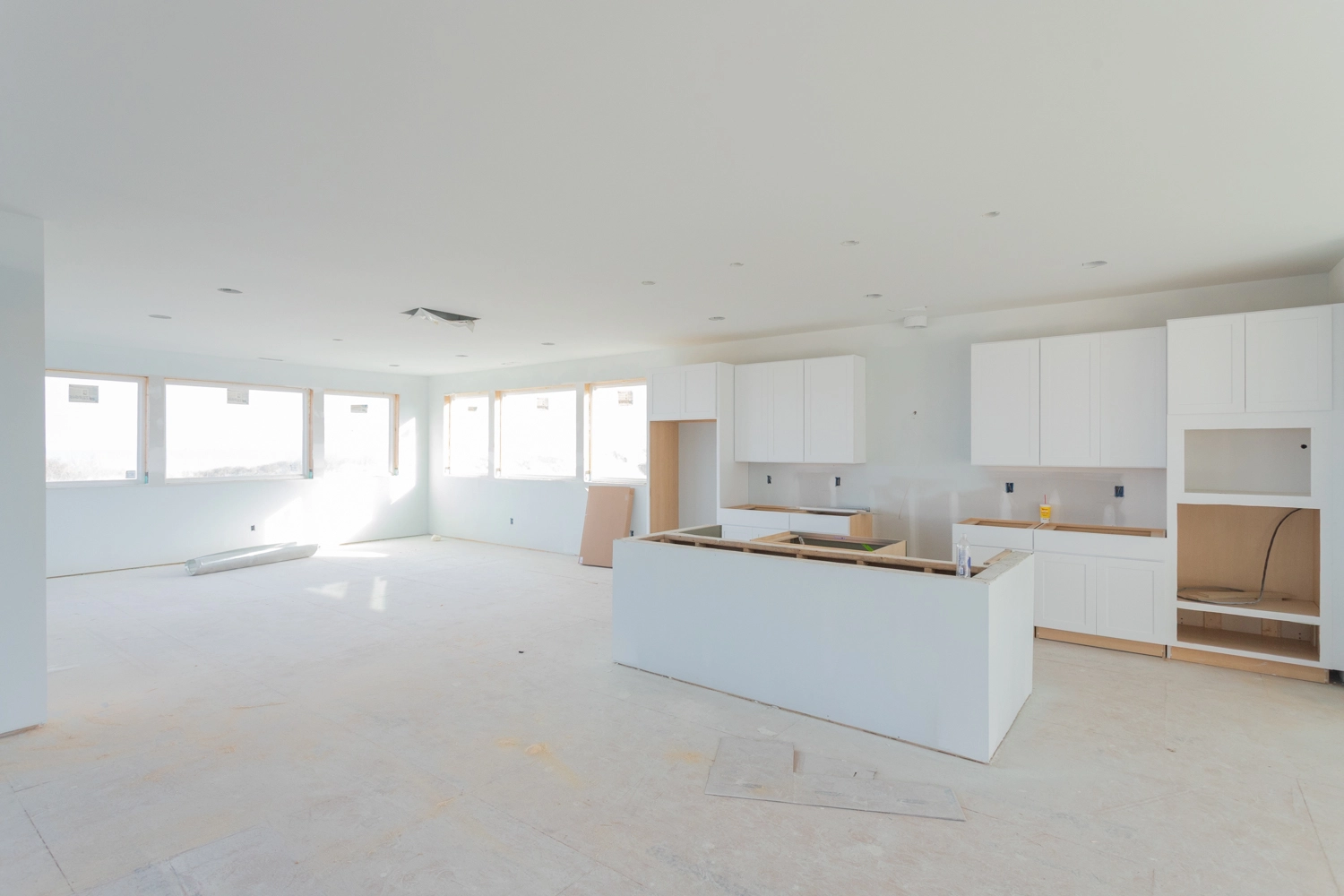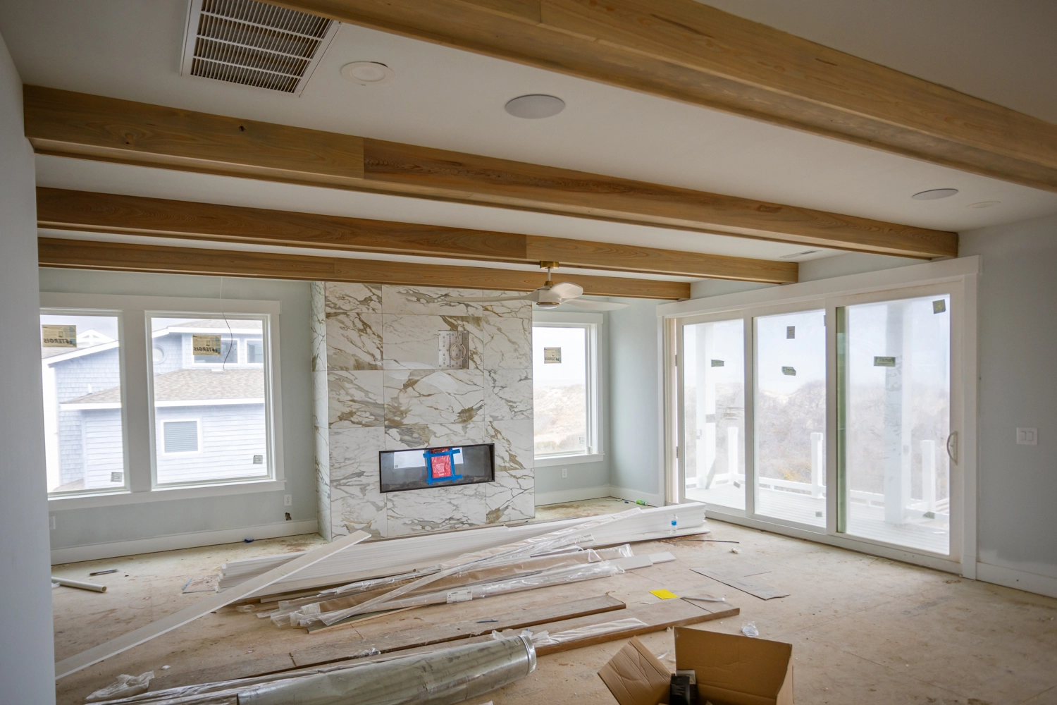 Great room with gas fireplace and wet bar with refrigerator; kitchen with gas stove, and two dishwashers; dining area.